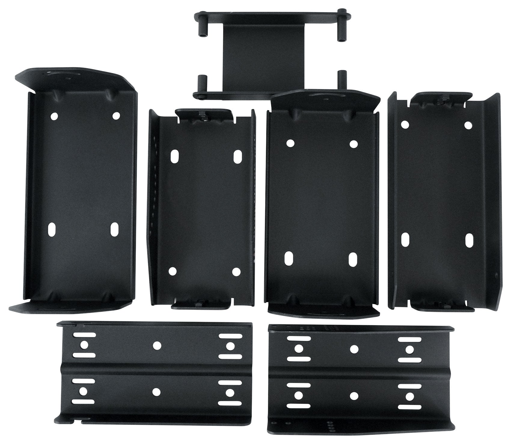 - Mounting: Included two-part swivel (pan)/tilt wall bracket provides continuously variable +/- 45 degree left-right swivel aiming (at no up/down tilt – see Bracket Guide for maximum swivel range at various up/down tilt angles), +/- 15 degree tilt in 1 degree fixed increment points. Fourteen (14) threaded mounting points located on back panel of cabinet conform to industry standard rectangular 127 x 70 mm (5.0 x 2.75 in) pattern for legacy OmniMount® and other compatible third-party brackets. Four (4) threaded mount points on the top end-cap and four (4) on the bottom end-cap. Threaded mounting points can be utilized for suspension. (Always use multiple mounting points.)