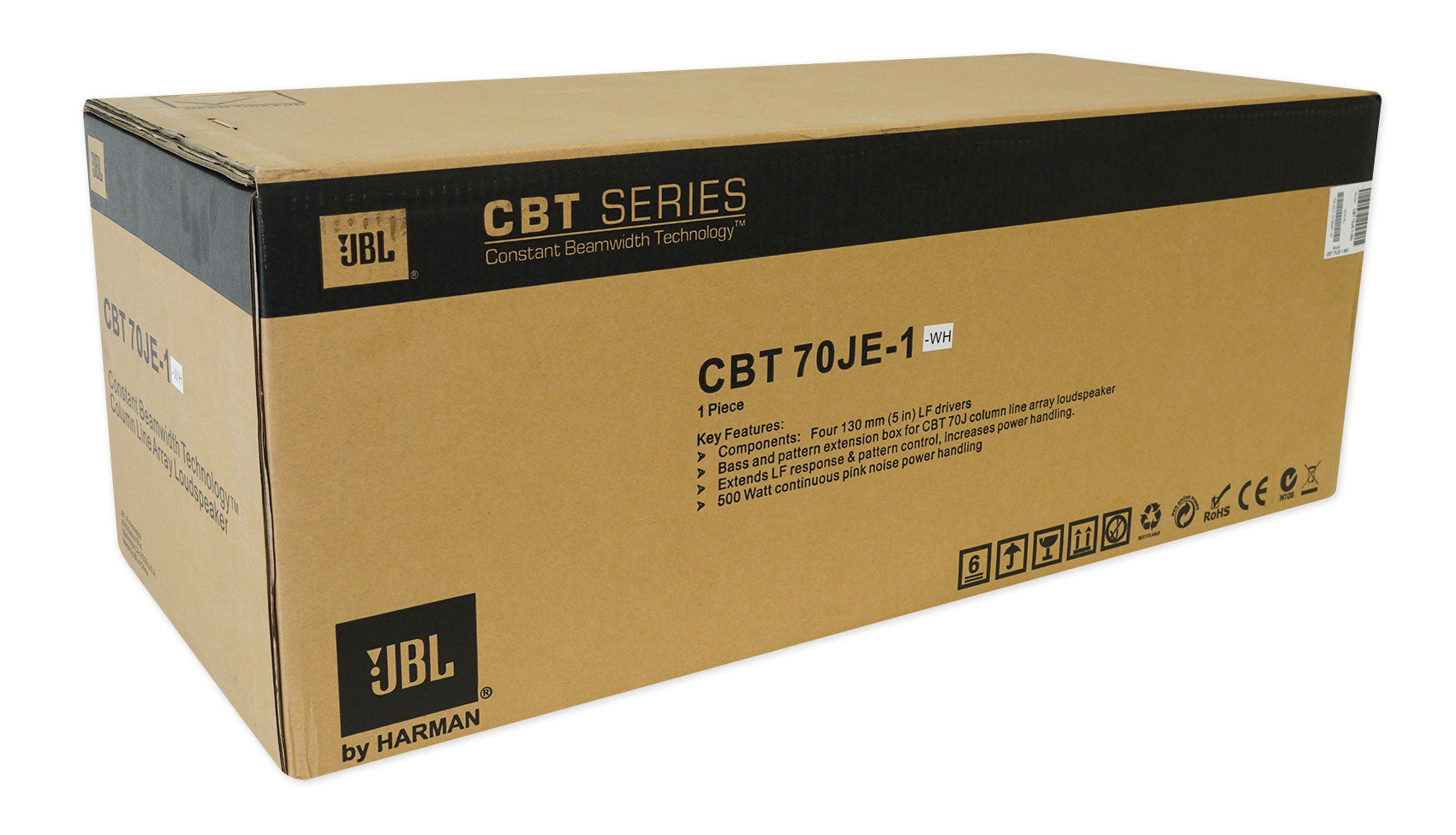 The White CBT 70JE-1 Extension for CBT 70J-1 Speaker by JBL Professional is purposely designed for use with the CBT 70J-1, in a tough ?berglass-reinforced ABS enclosure. The speaker contains four low frequency drivers and a crossover network. The 500 W power handling and high sensitivity delivers powerful low frequency output.