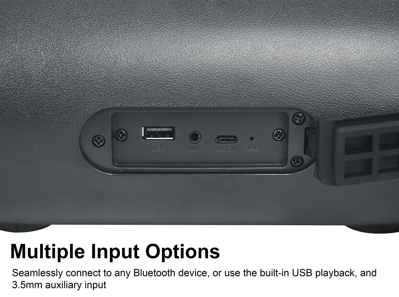 - Versatile Connectivity: Bluetooth, 3.5mm aux input, and USB for easy music playback.