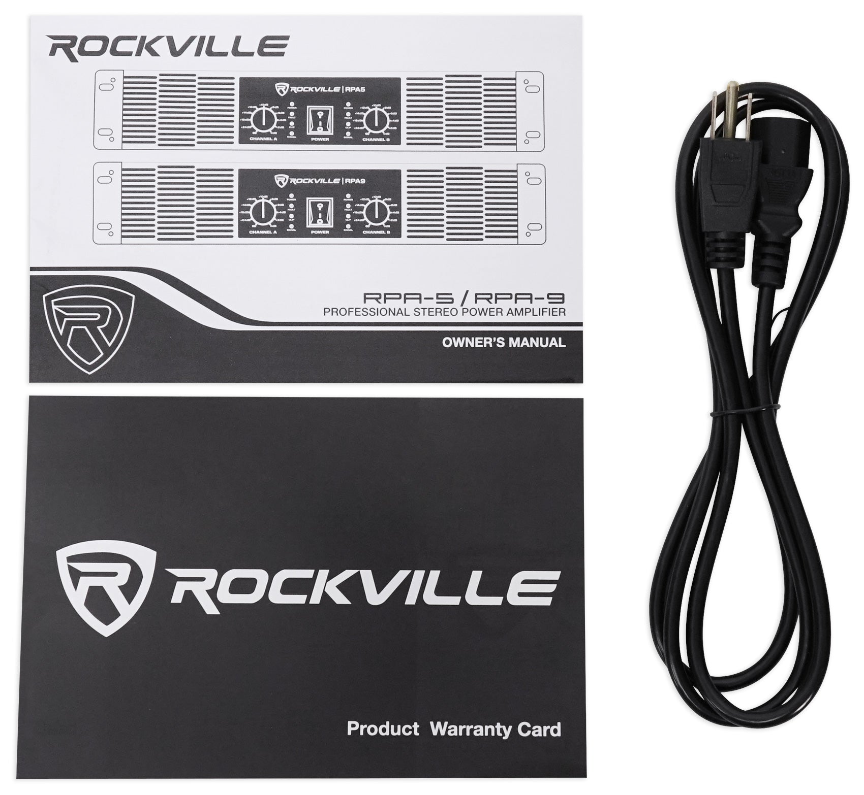 The Rockville RPA5 1000-watt power amplifier combines efficiency with great sound to deliver a lightweight amplifier that packs a ton of punch. This amplifier is engineered using advanced design and components creating a lightweight design and extremely reliable operation that can pound daily for years and years of use. The computerized IC controlled protection circuitry allows delivery of peak power while preventing overloads. The RPA5 is optimized for 4 and 8-ohm speakers, and is equipped with a stereo/mono speaker output switch allowing for quick system impedance optimization. The RPA9 amp fits perfectly into standard 19” racks, and is lightweight enough (less than 30 lbs.) to make it incredibly easy to transport.