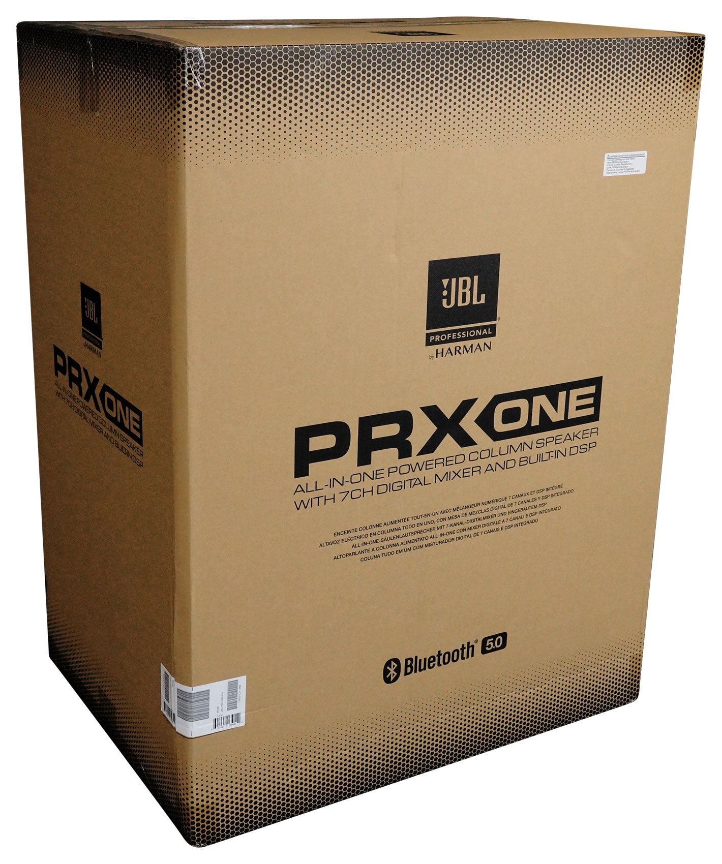 The JBL PRX ONE all-in-one powered PA features an acoustically optimized column array featuring a 7-channel digital mixer, a full suite of professional DSP, class-leading audio connectivity, Bluetooth functionality and JBL Pro Connect universal app control.