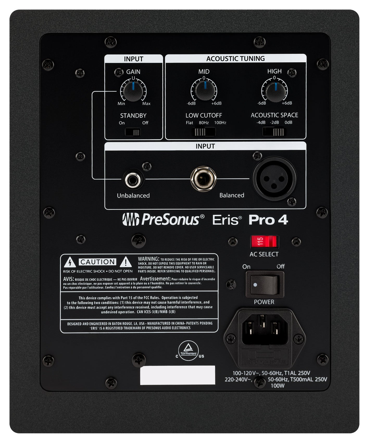 Flexible input options let you connect almost any line-level source, from mixers to audio interfaces and more. You’ll have no problem hooking your Eris speakers up to virtually anything. Lastly, provisions for wall and ceiling mounts make it easy to integrate Eris® Pro 4 monitors in any stereo or multi-channel system.