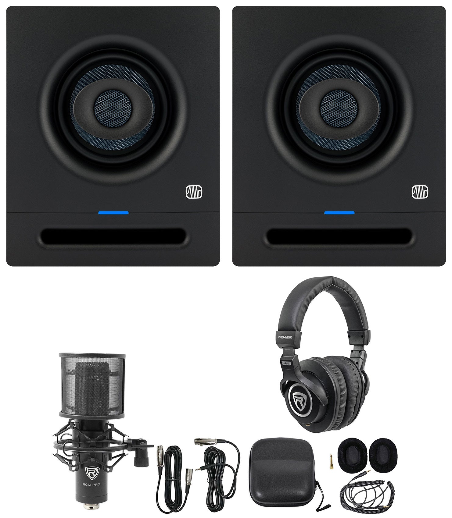 (2) Presonus Eris Pro 4 Powered 4" 2-Way Studio Monitors Speakers+Headphones+Mic