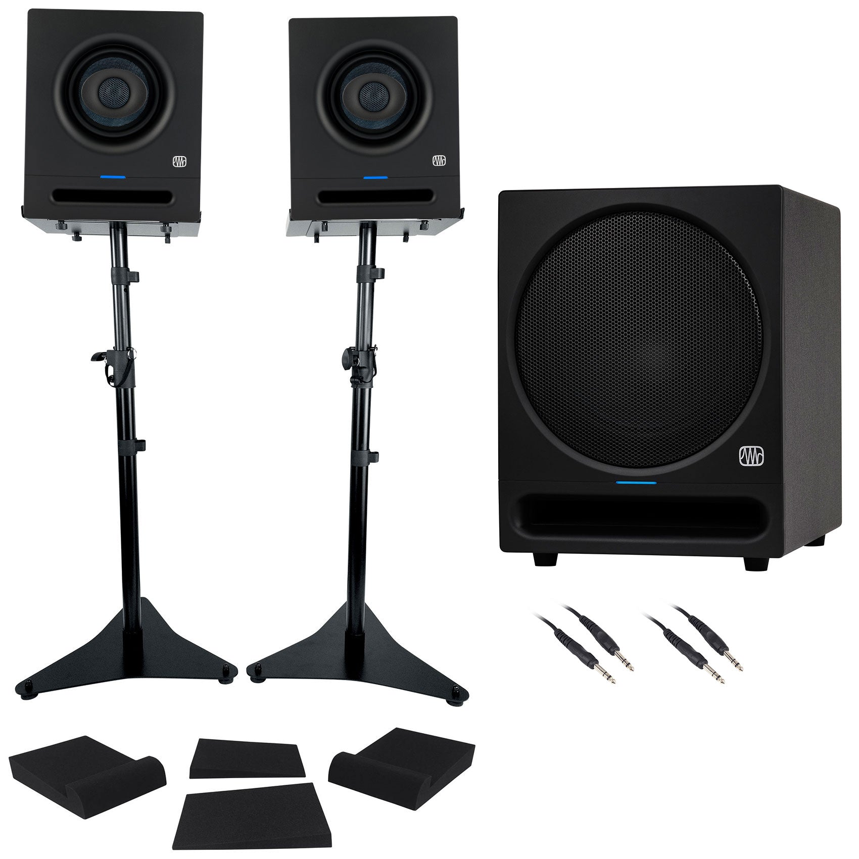 (2) Presonus Eris Pro 4 Powered 4" Studio Monitors+Stands+Pads+10" Subwoofer