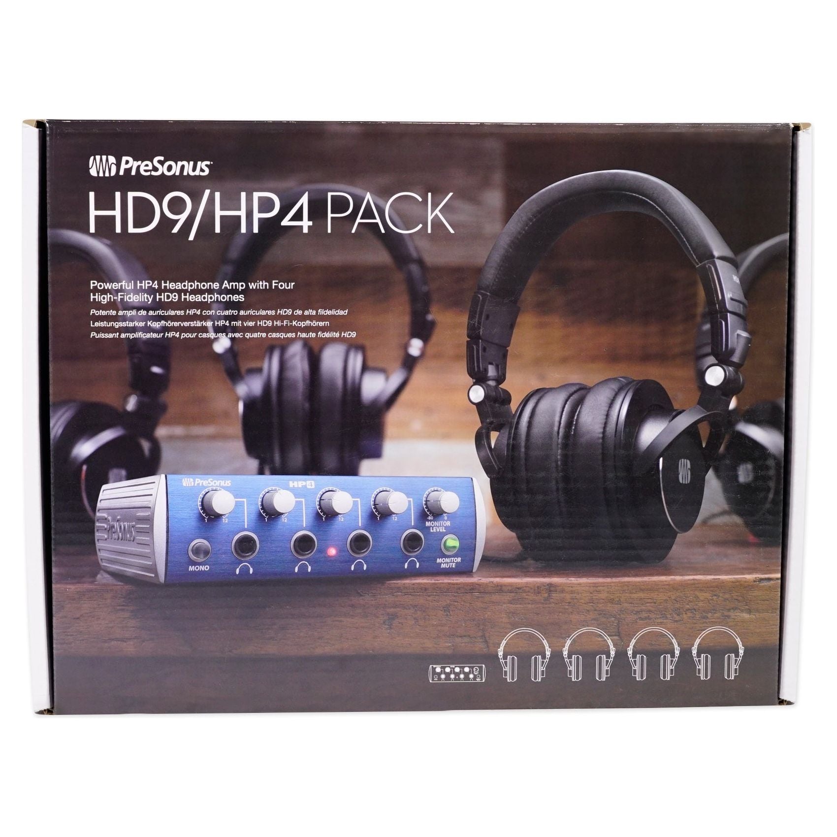 - PRESONUS HD9/HP4 PACK With HP4 Headphone Amplifier+ (4) HD9 Studio Headphones