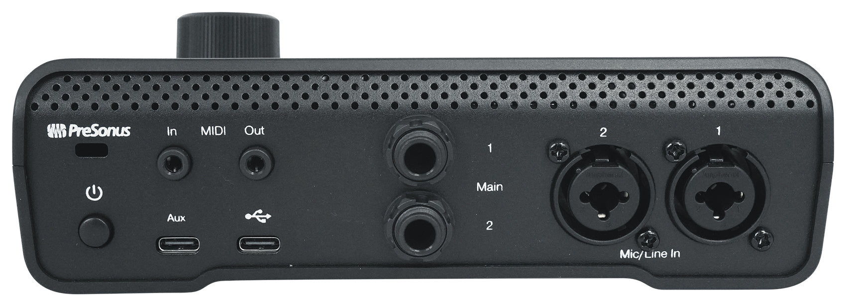 - 2 balanced ¼-inch TRS main outputs and high-power headphone output for flexible monitoring.
