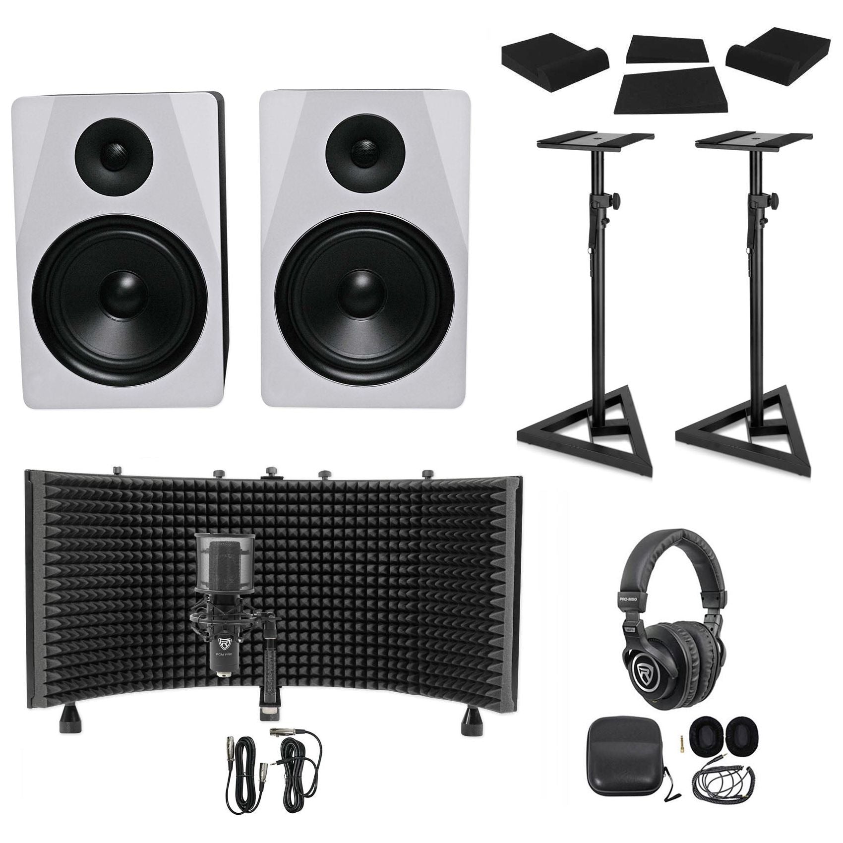 2) Rockville APM8W 8" Active Studio Monitors+Stands+Mic+Headphones+Iso Shield