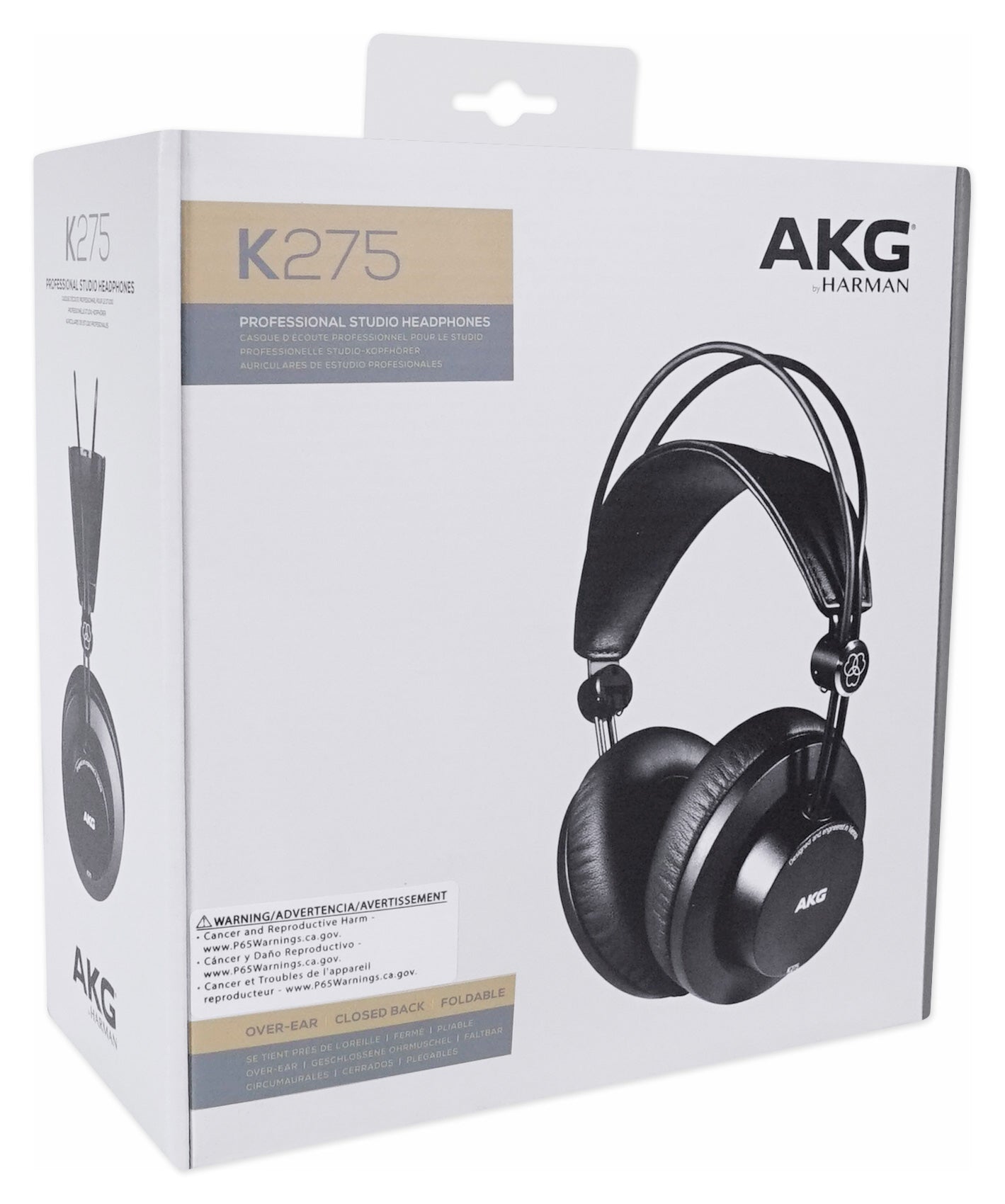 The K275 Studio line headphones offer 50mm transducers—the largest in their class—to create greater low-frequency extension and detailed bass reproduction. A 3-axis hinged foldable chassis houses foldable ear cups and a self-adjusting headband create the fatigue-free listening experience pioneered by AKG.