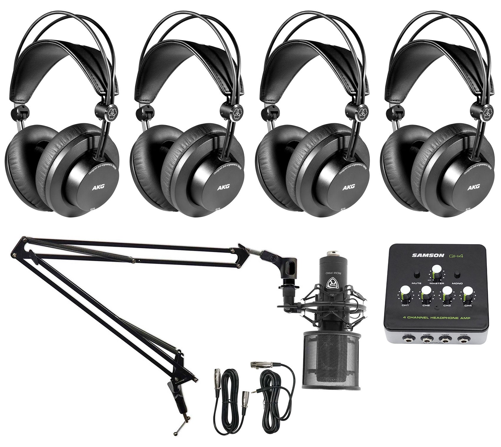 (4) AKG K275 Recording Studio Headphones+Headphone Amplifier+Microphone+Boom Arm