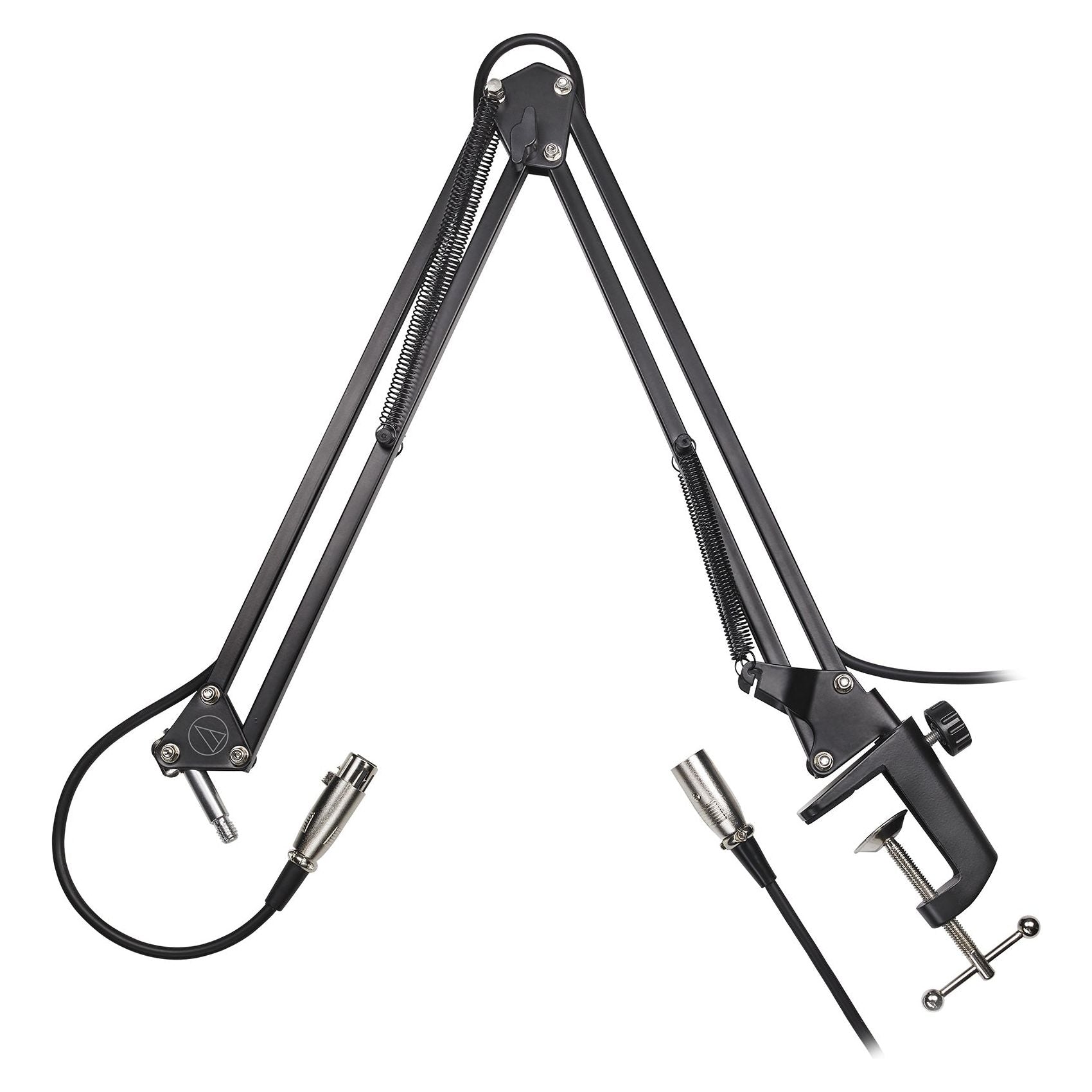 The adjustable studio boom arm clamps securely to desks, tables and other flat surfaces up to 55 mm (2.2") thick. The boom is equipped with a standard 5/8"-27 thread for easy attachment of the included pivoting microphone stand mount, and the XLR cable is threaded internally for a clean appearance and unhindered operation. Offering full 360° rotation and adjustable, spring-stabilized joints, the boom arm repositions quickly for optimal mic placement.