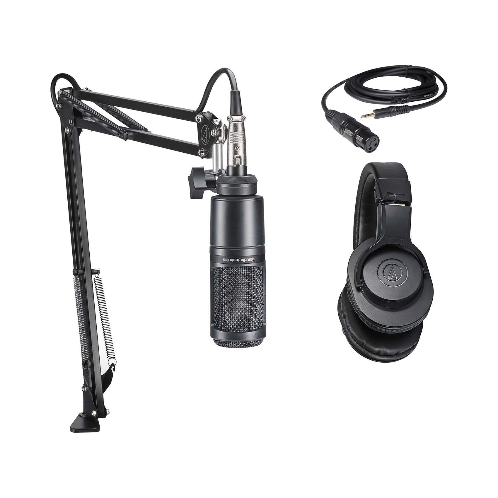 AT2020 Cardioid Condenser Microphone ATH-M20x Professional Monitor Headphones