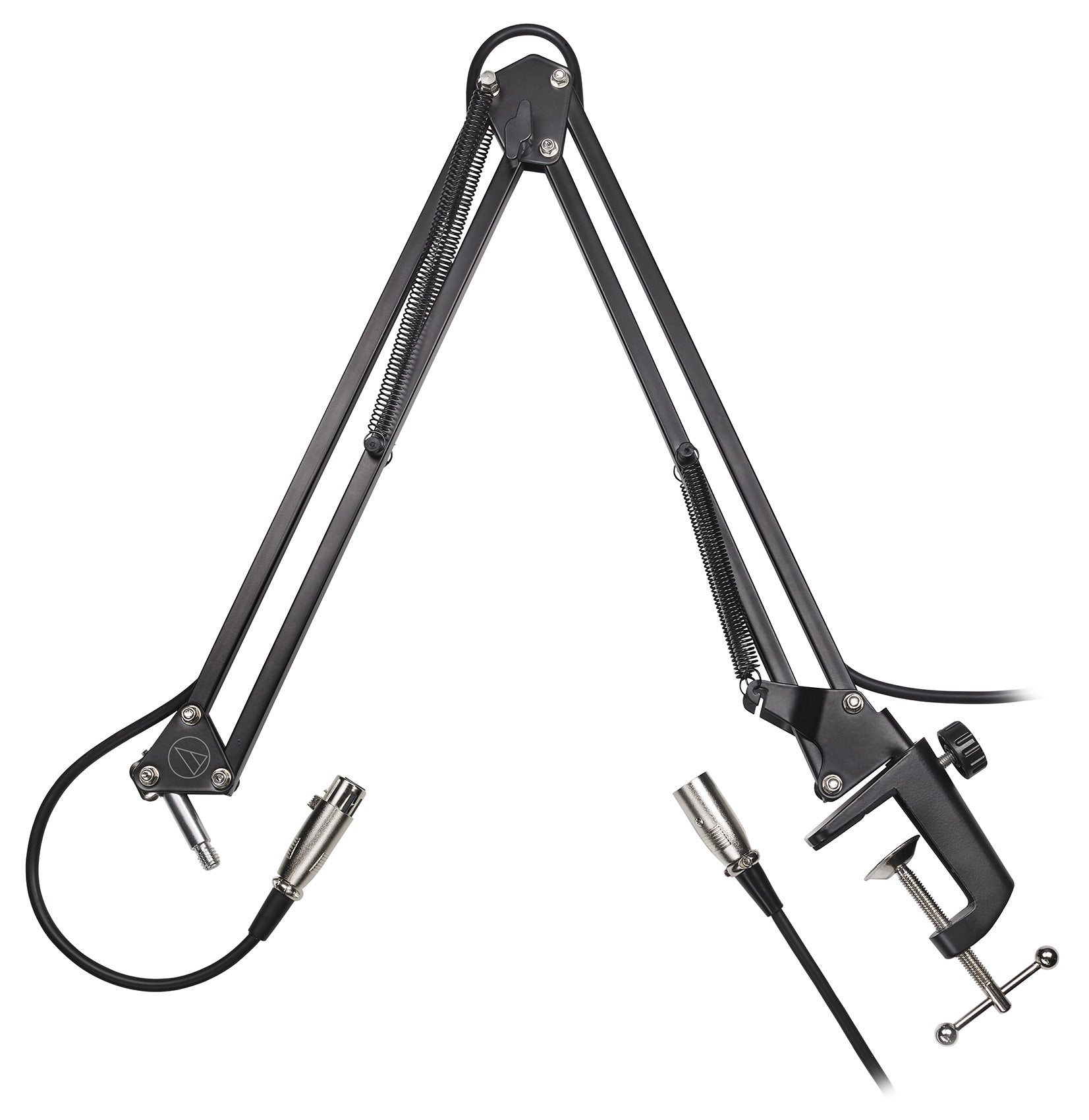 The adjustable studio boom arm clamps securely to desks, tables and other flat surfaces up to 55 mm (2.2") thick. The boom is equipped with a standard 5/8"-27 thread for easy attachment of the included microphone shock mount, and the XLR cable is threaded internally for a clean appearance and unhindered operation. Offering full 360° rotation and adjustable, spring-stabilized joints, the boom arm repositions quickly for optimal mic placement.