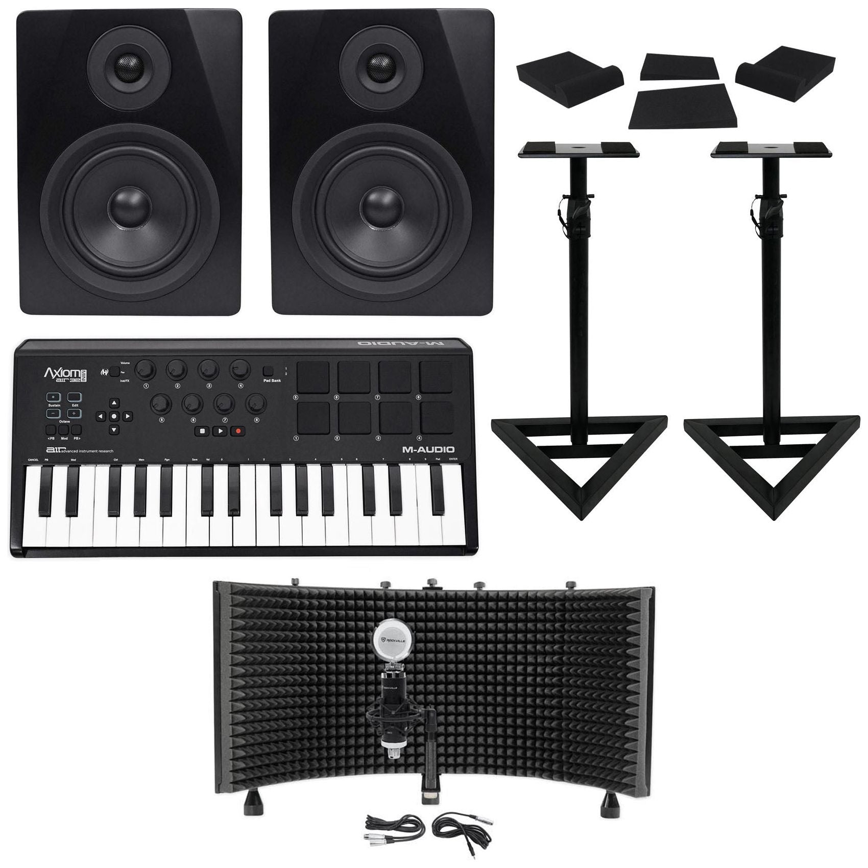 M-Audio Axiom AIR Mini 32 Keyboard Controller+Monitors+Stands+Pads+Mic+Shield