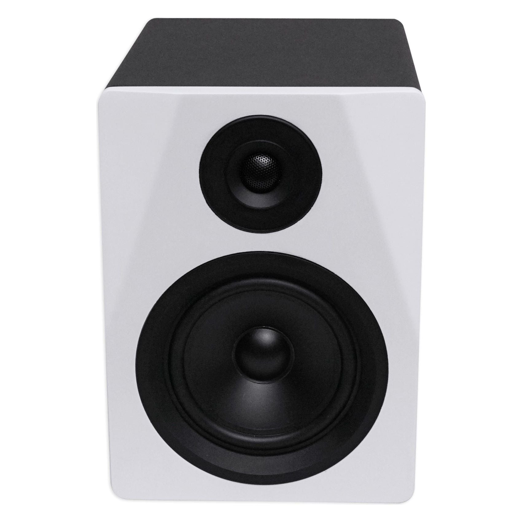 Every studio or computer room should look beautiful. We believe speakers should enhance the look of a room. We make these speakers in 3 beautiful finishes: painted black, painted white, and wood finish. We use “baking paint” made for wood surfaces. Baking paint is long lasting and is the best paint for speakers! We went with a beautiful finish that is mostly matte with a slight shine to it. Our designers spent countless hours on the color and design to make sure it is not only beautiful, but elegant as well to improve the appearance of your studio or room. We kept all the controls on the back of the speaker, which will keep the speaker looking very clean and modern. The tweeter has a curved front bezel to make the highs crystal clear and distortion free.