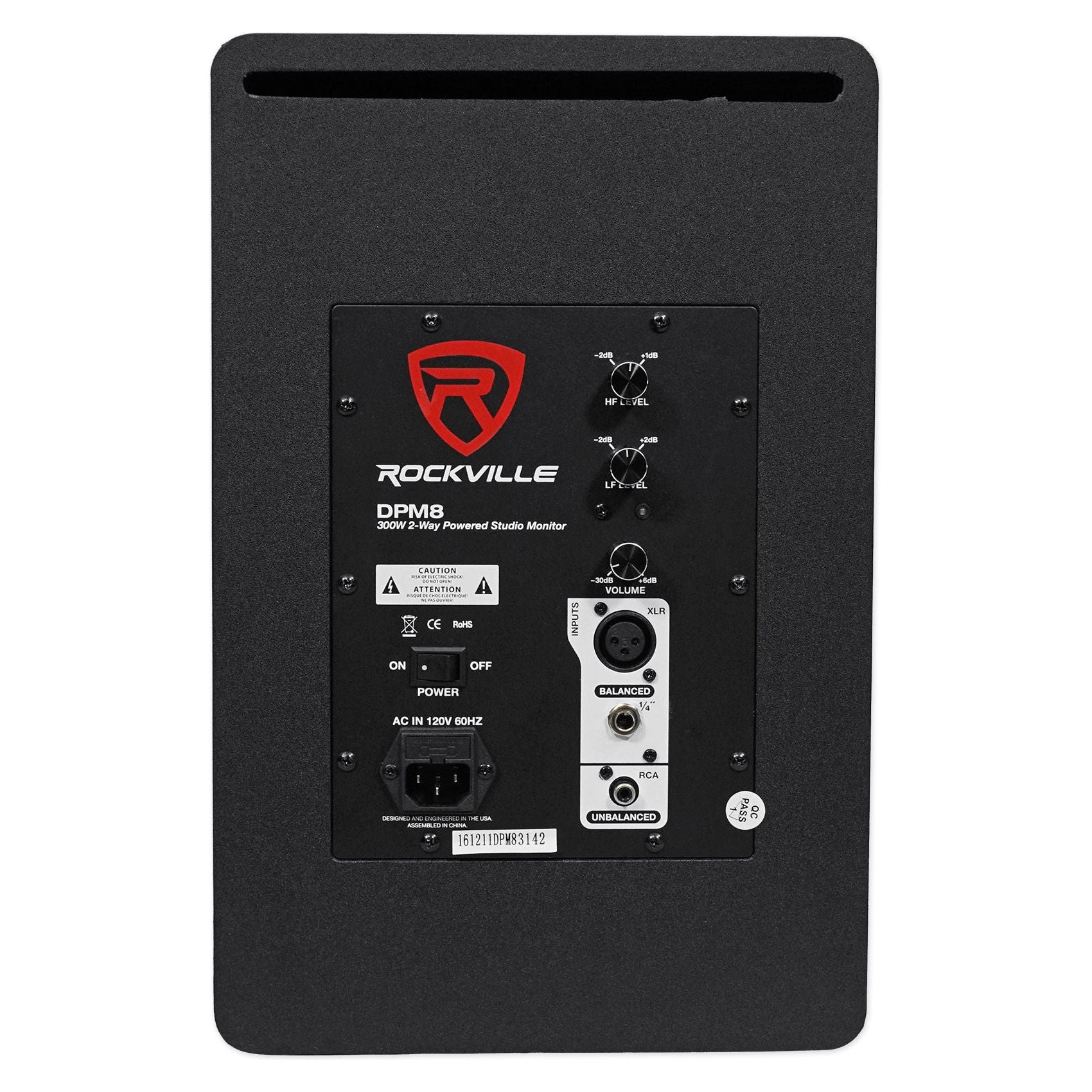 - Rockville DPM8W 8" 2-Way 300W Active/Powered Studio Monitor Speaker in White (sold individually)