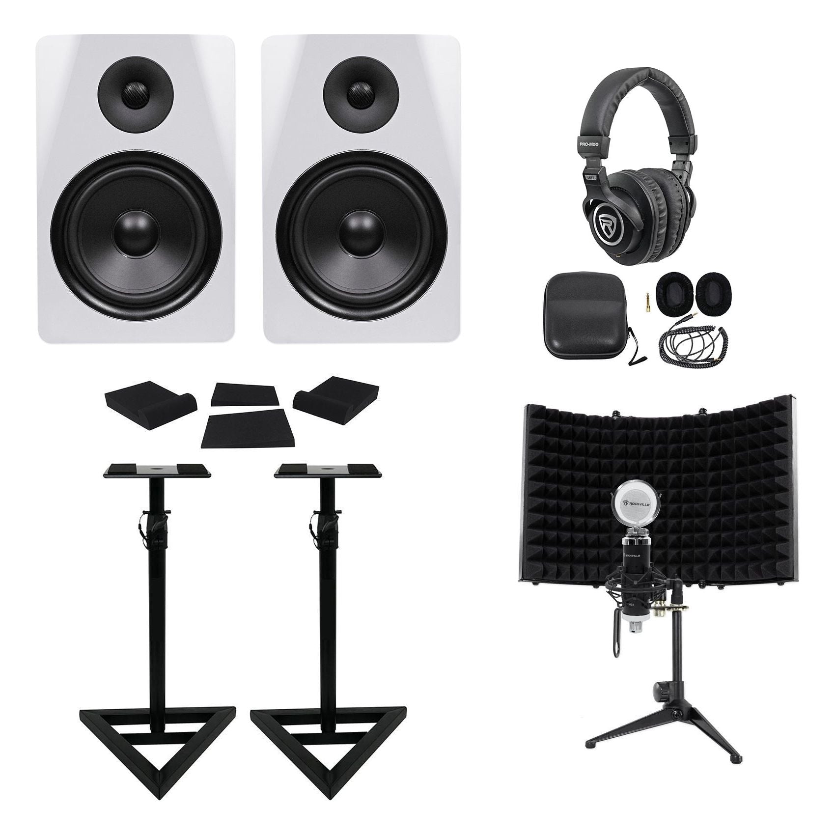 Pair Rockville DPM8W 8" 600 Watt Studio Monitors+Stands+Headphones+Mic+Shield