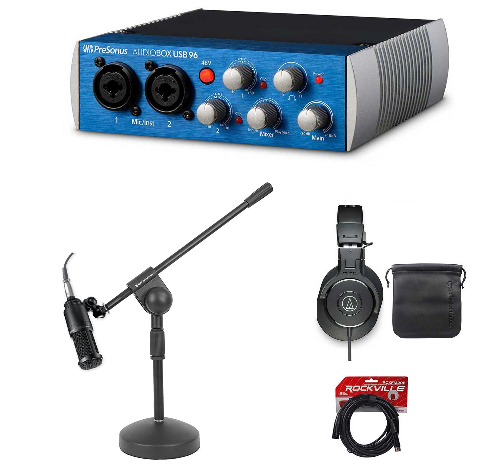 Presonus+Audio Technica Podcast Bundle w/ Interface+Mic+Headphones+Stand