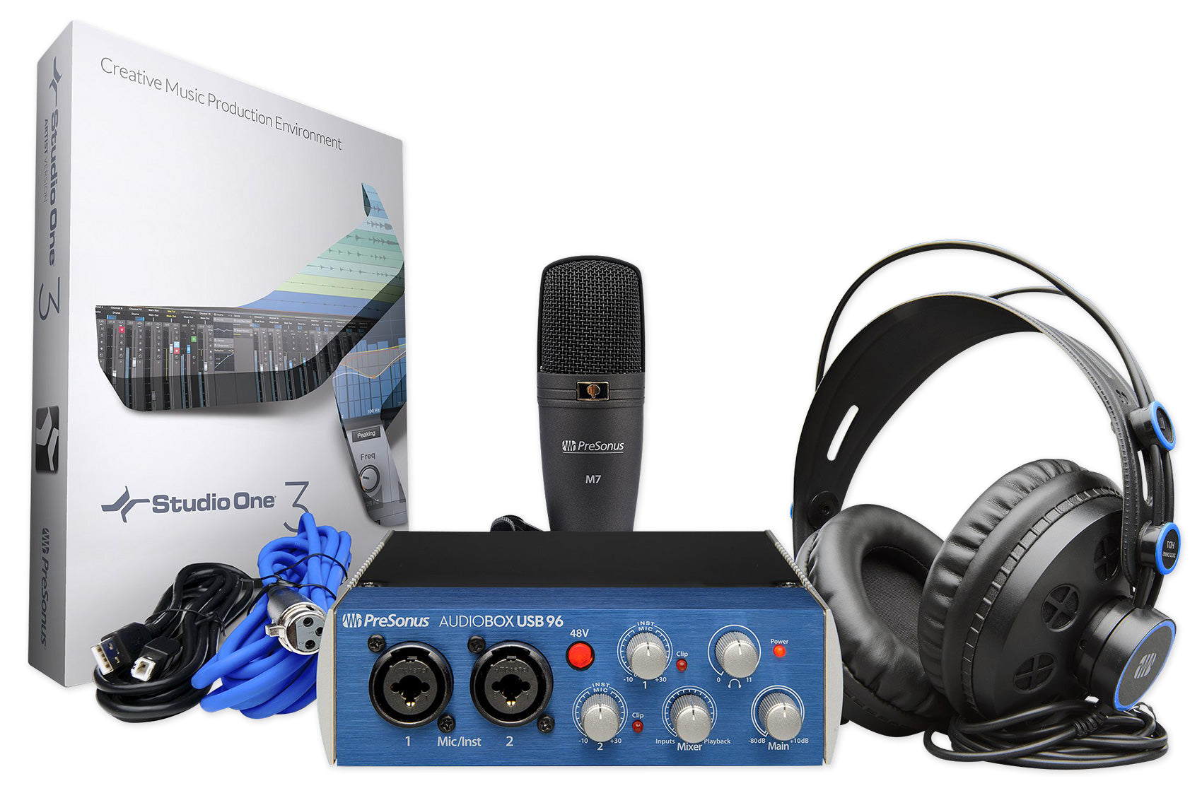 Start recording today with this complete, all-PreSonus® package! Based on the AudioBox USB® 96 audio/MIDI interface and award-winning Studio One recording and production software, PreSonus AudioBox 96 Studio is great for creating multitrack recordings, demos, live recordings, podcasts, field recordings for video and sound effects, and much more.