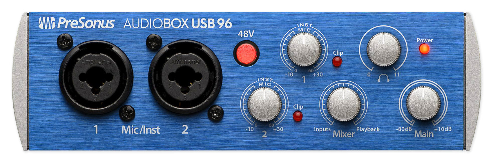 The AudioBox USB 96 is the heart of the AudioBox 96 Studio. This simple, handy little audio/MIDI interface has just the right features for basic recording needs, including two combo mic/instrument inputs and zero-latency monitoring, so you can simply plug in and start recording right away. Bus-powered, built to travel, compatible with most recording software for Mac and Windows, and equipped with high-performance microphone preamplifiers and professional-quality, 24-bit, 96 kHz converters, the AudioBox USB 96 makes high-definition recording easy.