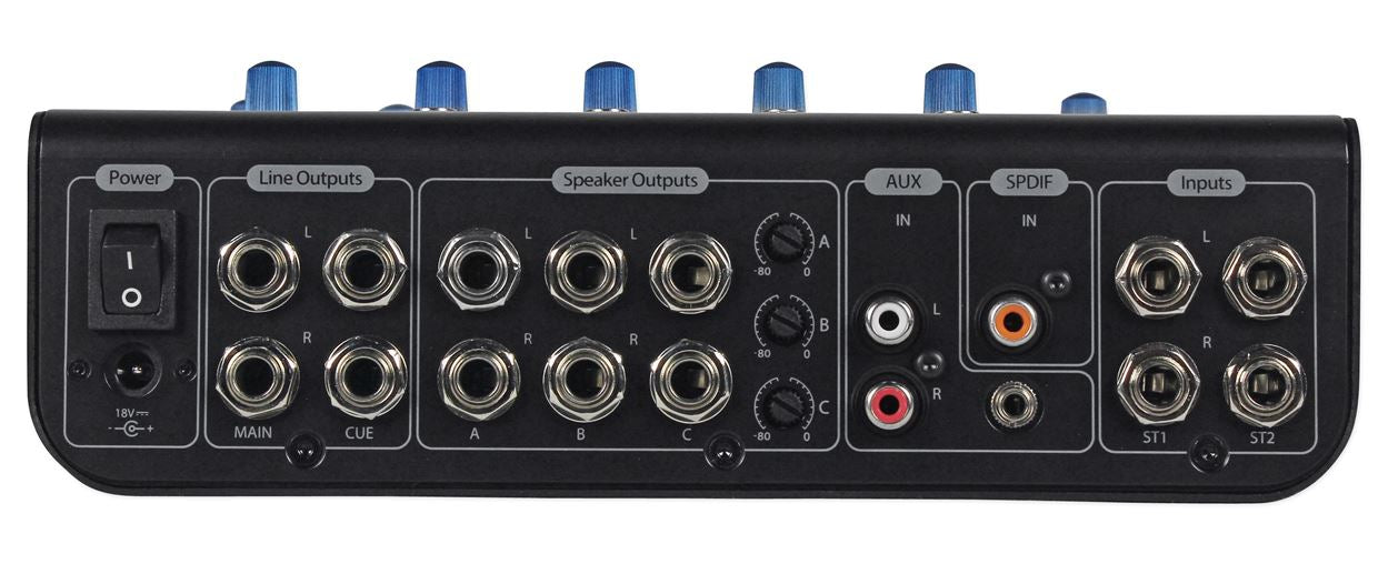 - Three stereo pairs of balanced 1/4” TRS speaker outputs