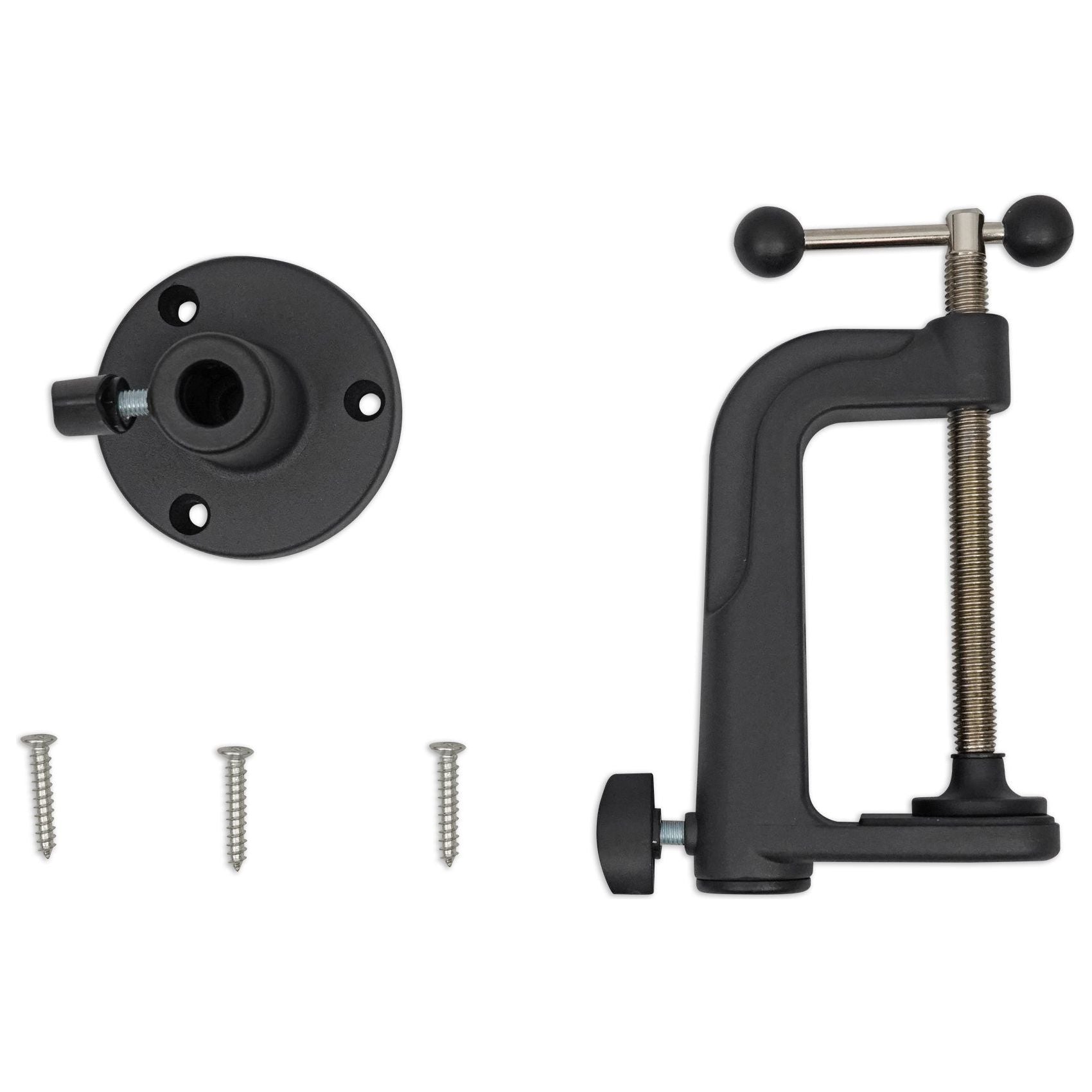 With two mounting options included, the MBA38 can be temporarily attached to a table or desk with the C-clamp mount, or more permanently fixed to a surface with the flange mount. In combination with durable steel construction, this mic boom arms offer 5/8"-27 mic clip threading that can accommodate any mic weighing up to five pounds.