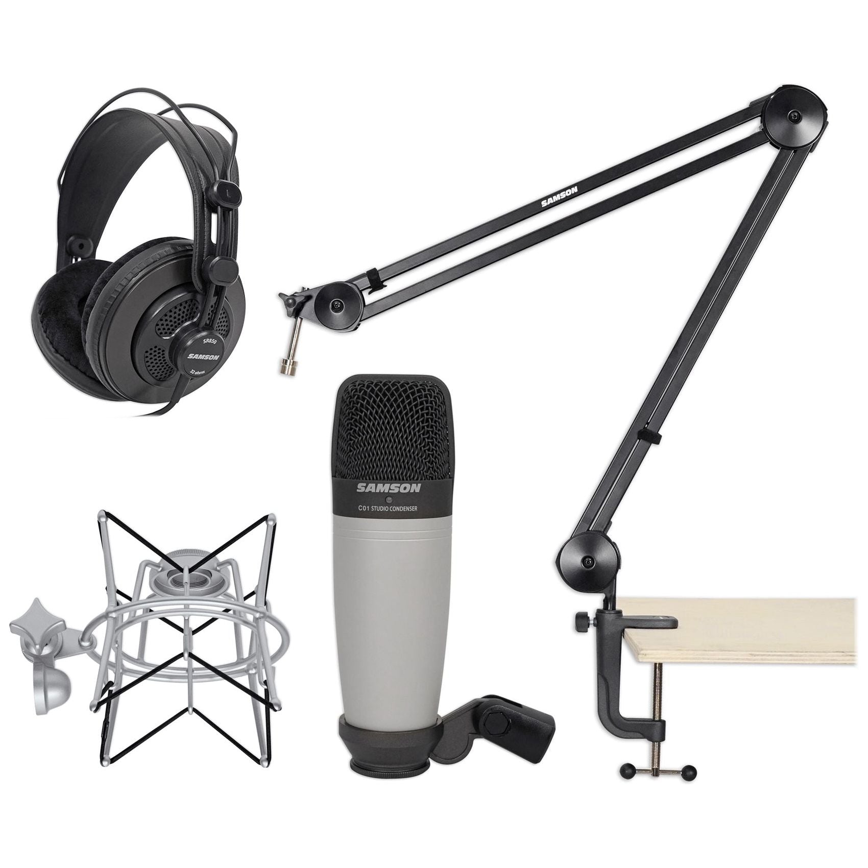 Samson C01 Condenser Recording Mic+Boom Arm+Desk Clamp+Shock Mount+Headphones