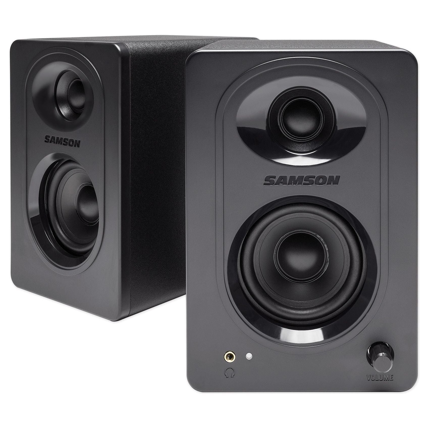 Samson’s MediaOne M30 Powered Studio Monitors are a compact, full-range speaker solution for all your desktop and multimedia applications. Whether you're listening to music, producing tracks, watching videos or gaming, this stereo monitor pair features an internal amplifier, solid wood construction and high-quality components that produce big sound, while occupying minimal desktop space..