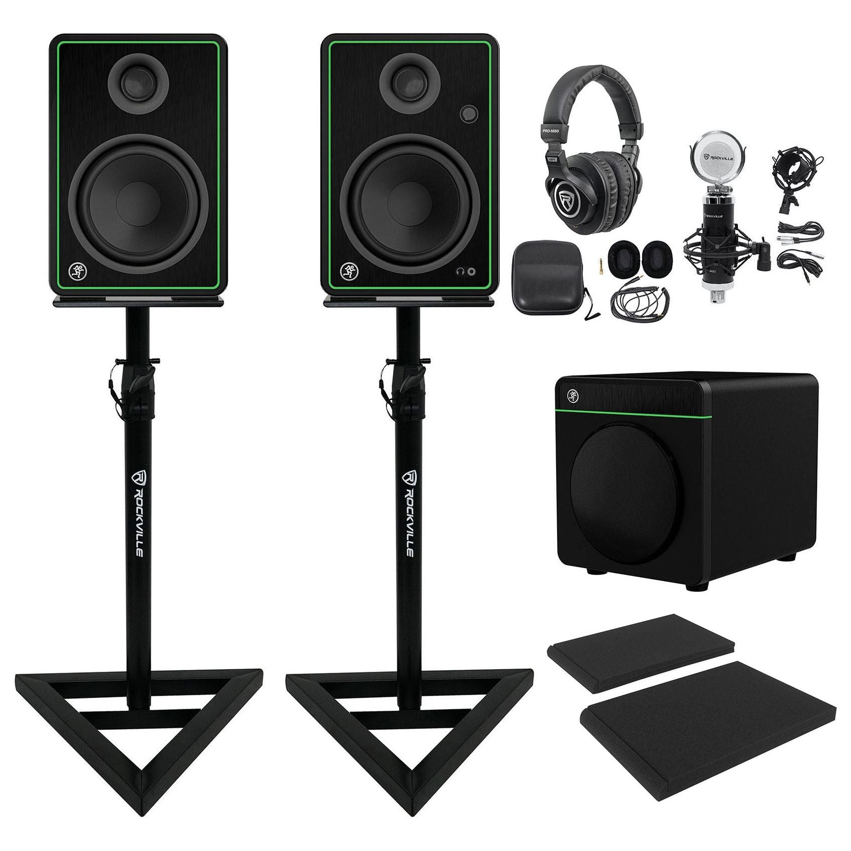 Studio Kit (2) Mackie CR5-XBT 5" Studio Monitors+8" Sub+Headphones+Mic+Stands