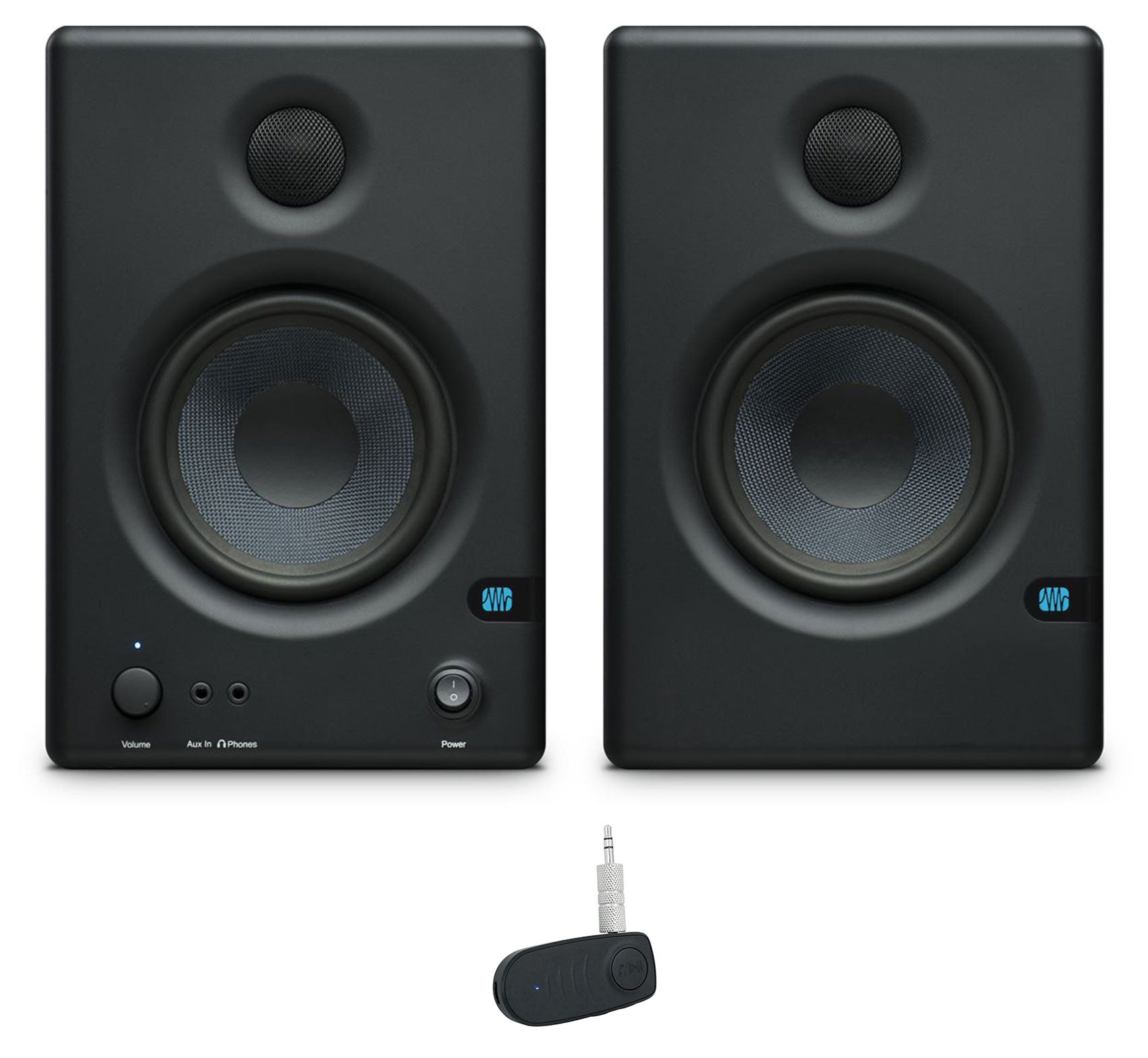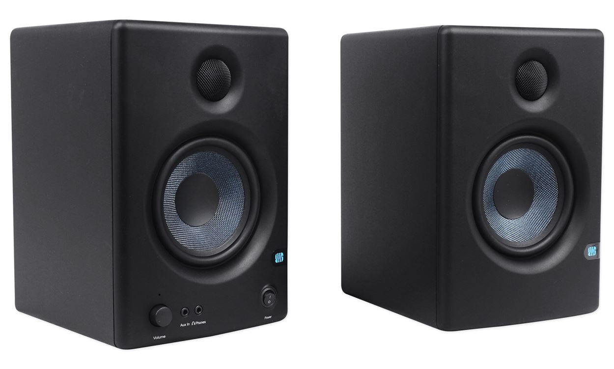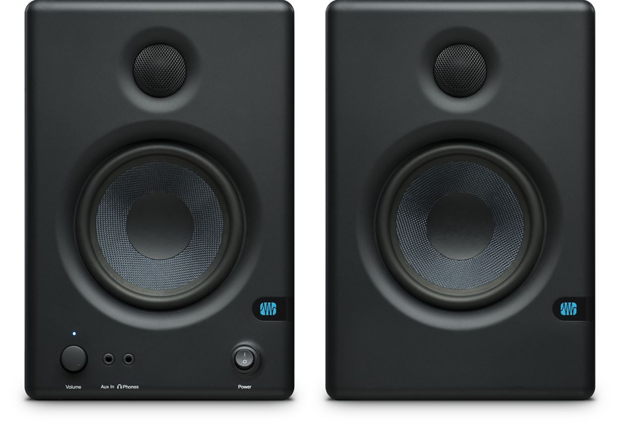 Designed by a proven leader in recording technology, Eris E4.5 speakers deliver studio-quality sound yet are small enough to fit almost anywhere, making them a great choice for gamers and home video producers.Compact size with studio-quality sound; 4.5-inch woven composite woofer and 1-inch silk-dome tweeter; ¼-inch balanced TRS, RCA, and 1/8” stereo unbalanced line inputs; convenient front-panel volume control; integrated headphone amplifier; low- and high-frequency tuning controls; 25W/side class AB power amp.
