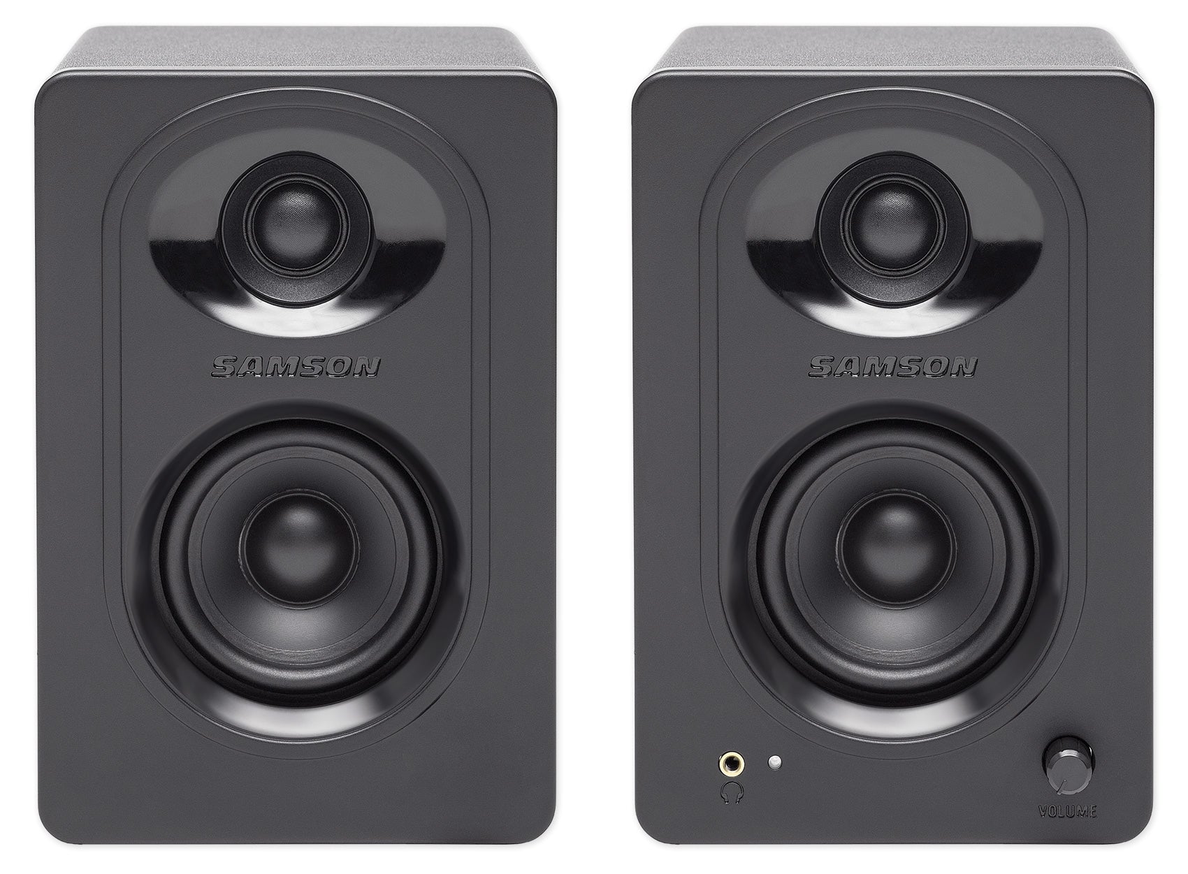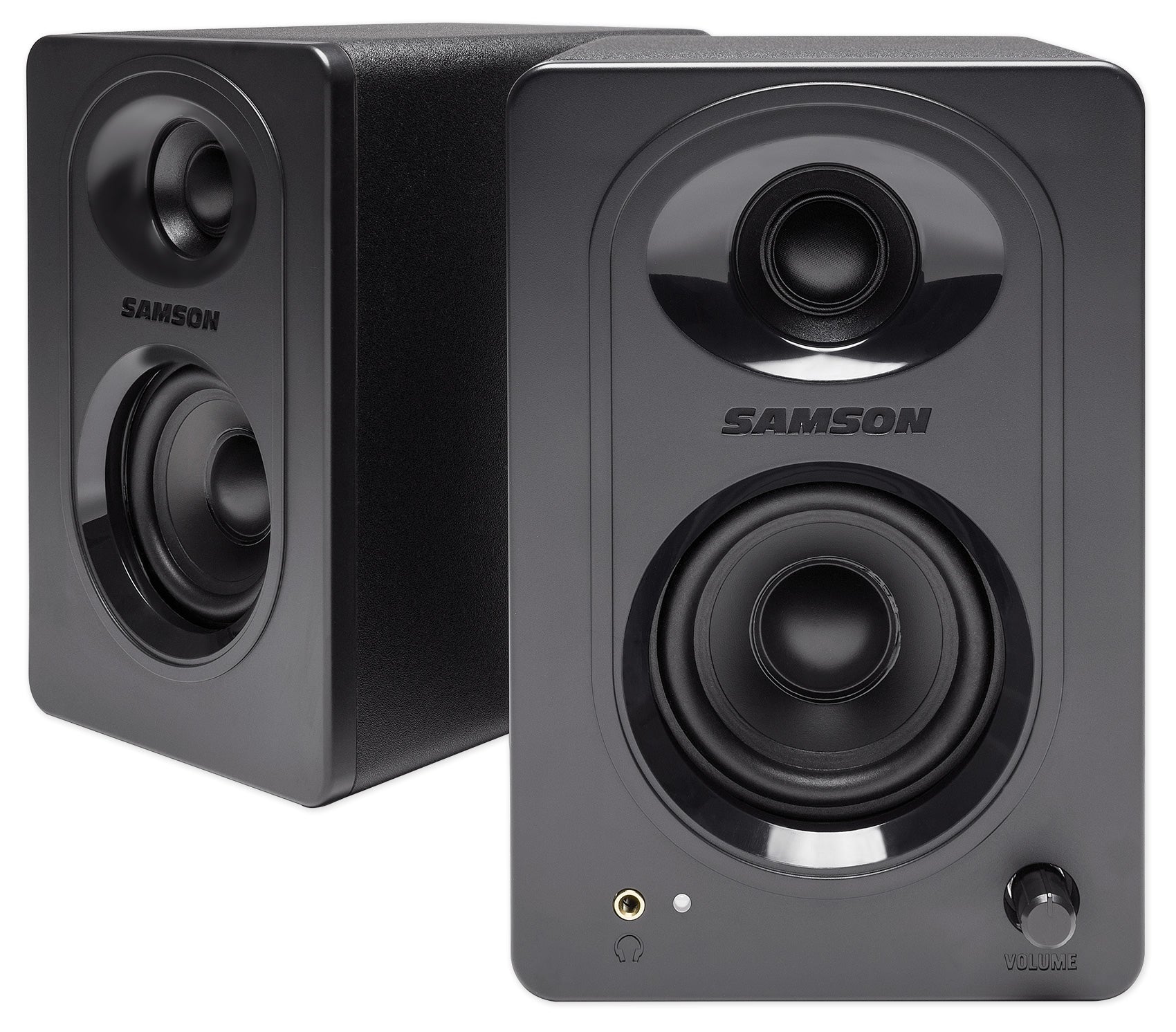 Samson’s MediaOne M30 Powered Studio Monitors are a compact, full-range speaker solution for all your desktop and multimedia applications. Whether you're listening to music, producing tracks, watching videos or gaming, this stereo monitor pair features an internal amplifier, solid wood construction and high-quality components that produce big sound, while occupying minimal desktop space..