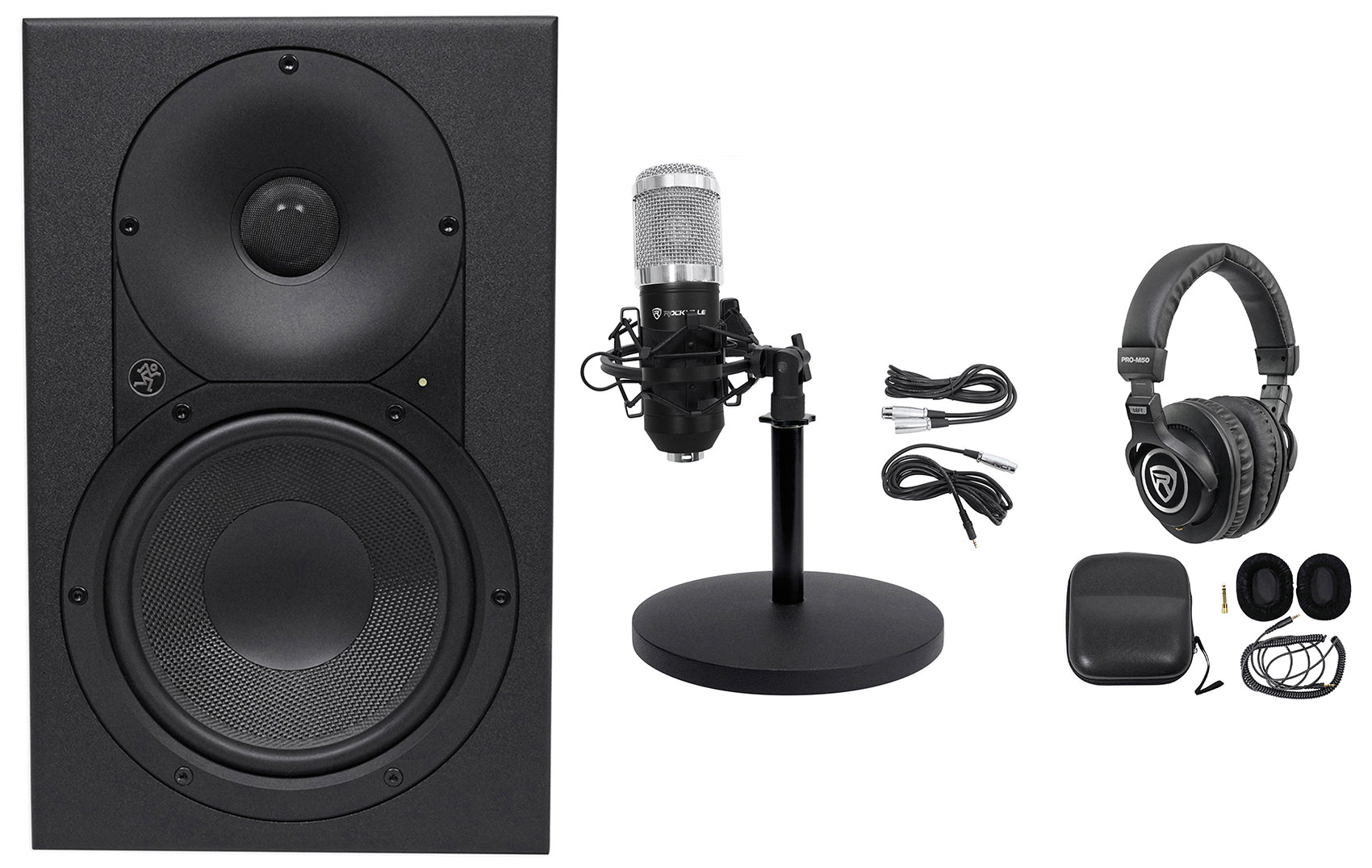 Mackie XR624 6.5" Powered Studio Monitor Speakers+Headphones+Condenser Mic+Stand
