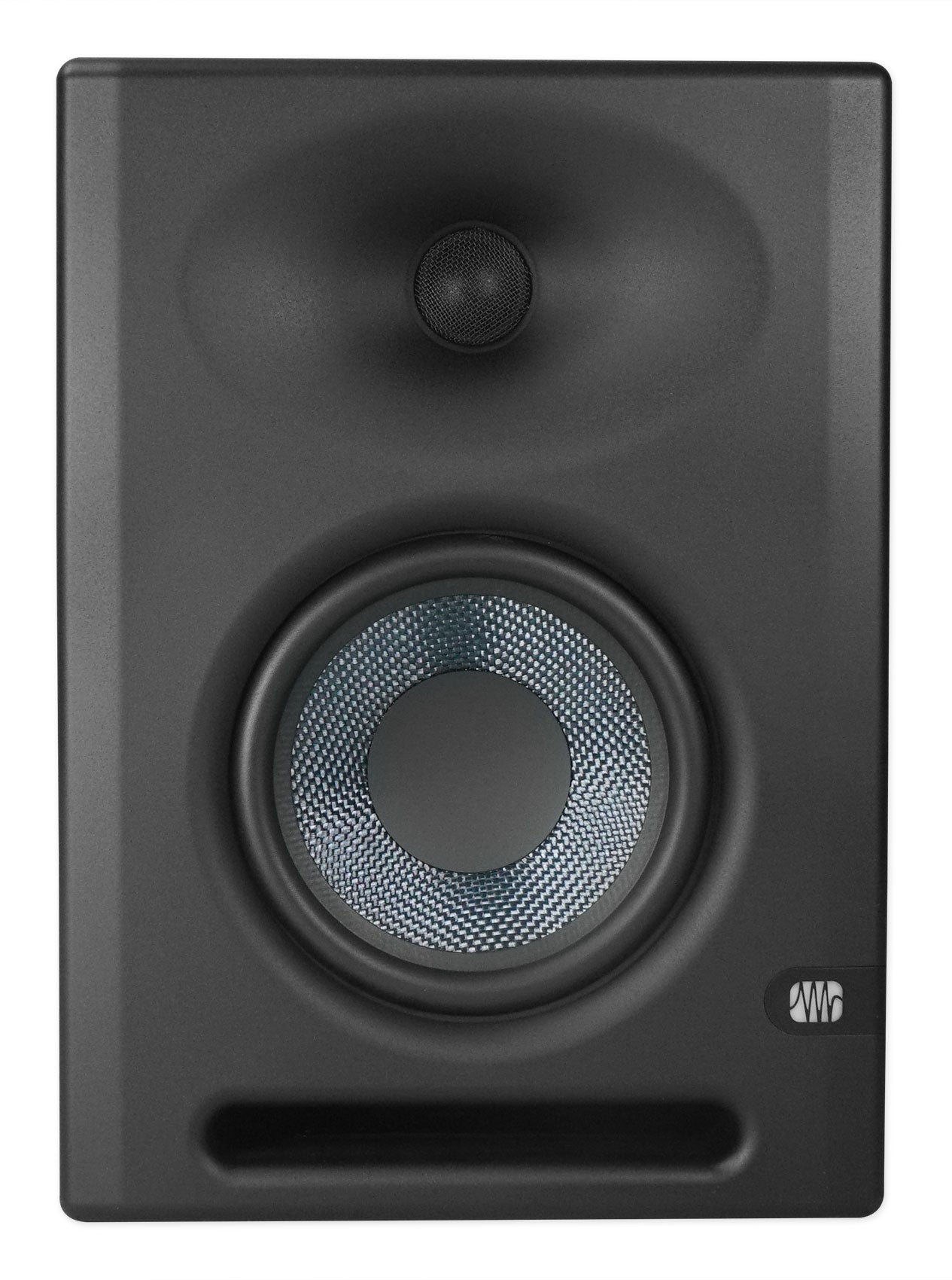 The familiar woven composite low-frequency driver still offers Eris' signature tight, clear bass; plenty of punch and no flub. Eris E5 XT studio monitors sport a ported enclosure that is larger than that of their predecessors, allowing them to reach down to an astonishing 48 Hz. That's 10 Hz below previous models—with no subwoofer required!