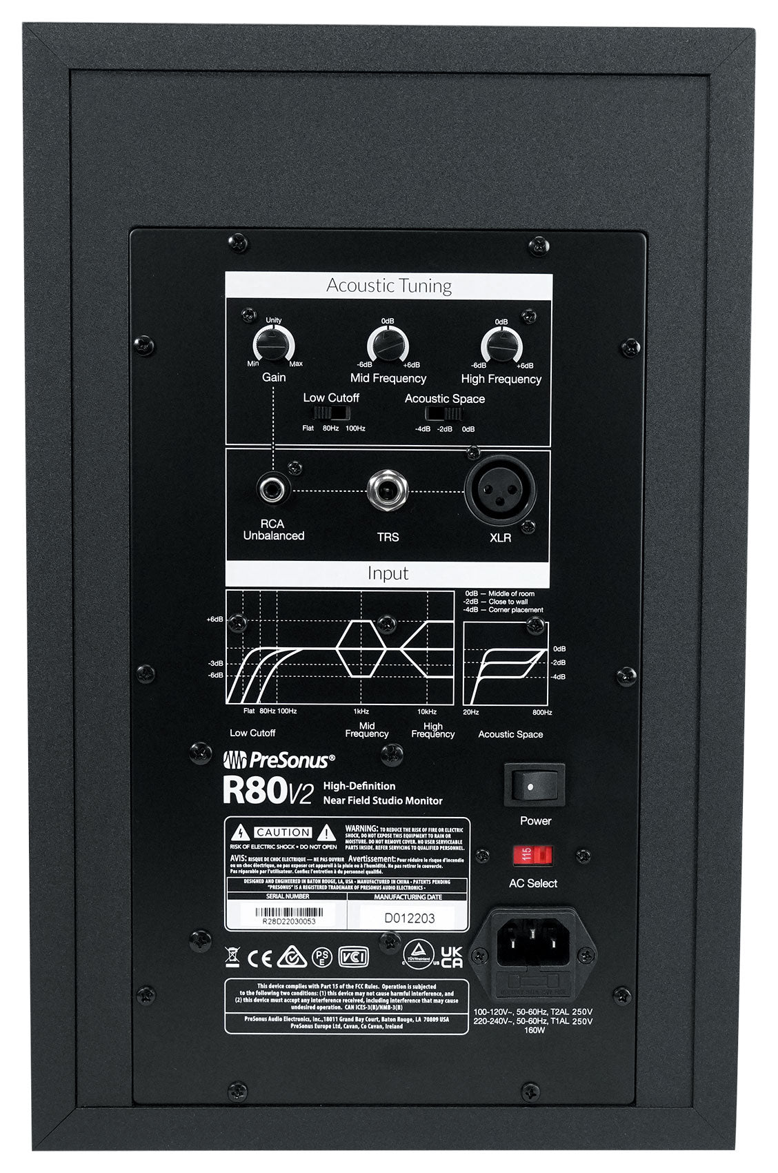 Improving the respected R-series classics wasn't easy, but we found a way: by giving you more control than was available on the original R80. The updated R80 V2 features analog acoustic tuning controls that will be familiar to users of our celebrated Eris® line—you get Low Cut, Mid Frequency, and High Frequency controls, as well as a three-way Acoustic Space switch that allow you to easily compensate for the sonic consequences of speaker placement against a wall or in a corner. We also added a new Class A/B amplifier to provide an even warmer and smoother overall frequency response.