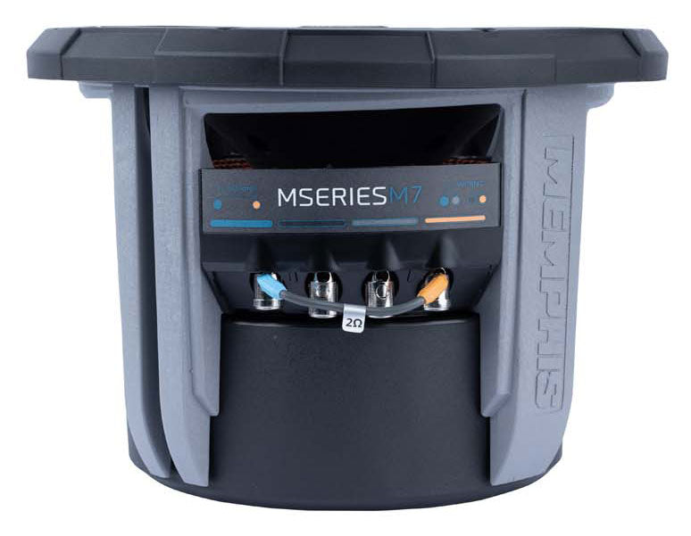 Exceptional clarity and big bass makes MSeries subwoofers a fan favorite. M7 is focused on exceptional clarity and power handling designed for accurate and high quality sound production. These subwoofers are packed with state-of-the-art technology and build quality to deliver unmatched performance and versatility. One look at the beefed up cast basket and it is evident the M7 means business. The addition of the patented Selectable Impedance Technology, DVVC cooling, and a folded V-groove max-excursion surround make this the most technologically advanced MSeries subwoofer to date. With a power handling of 750watts RMS, the M7 10? subwoofer will give you a true concert experience in your vehicle.