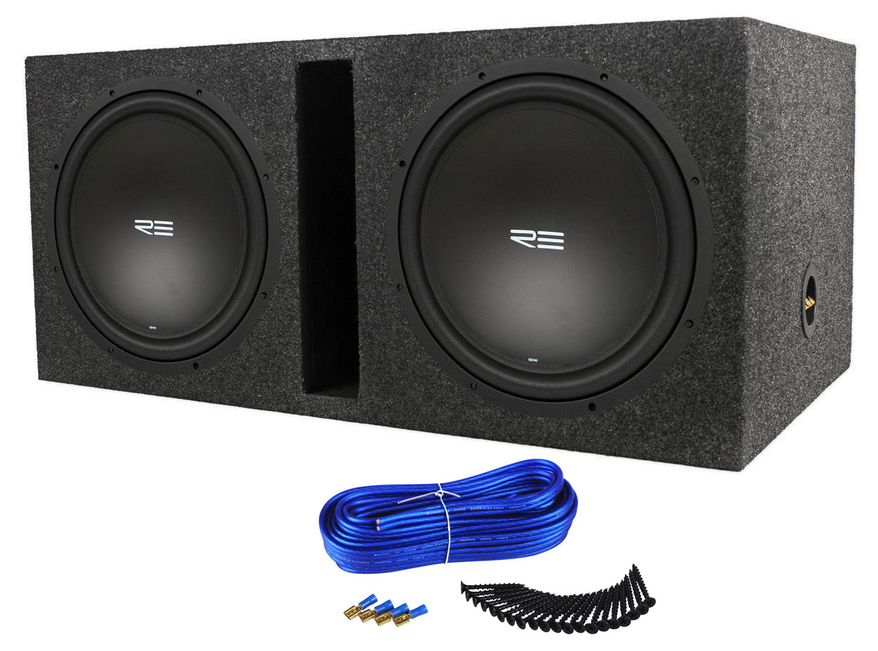 (2) RE Audio 600 Watt SRX12D2 SRX 12" Car Subwoofers + Vented Sub Box Enclosure