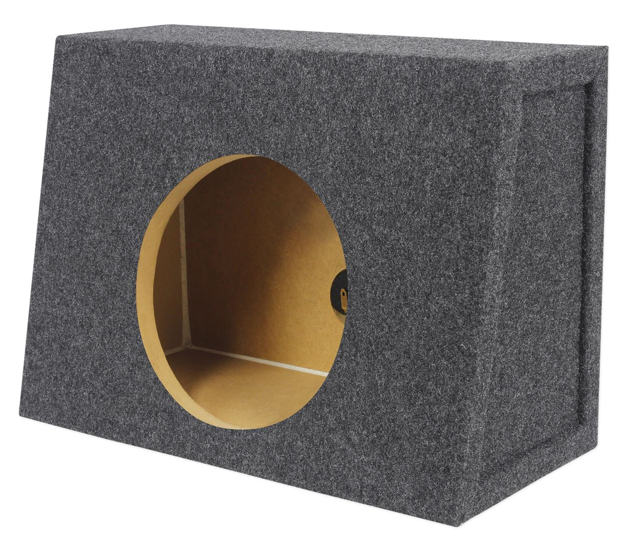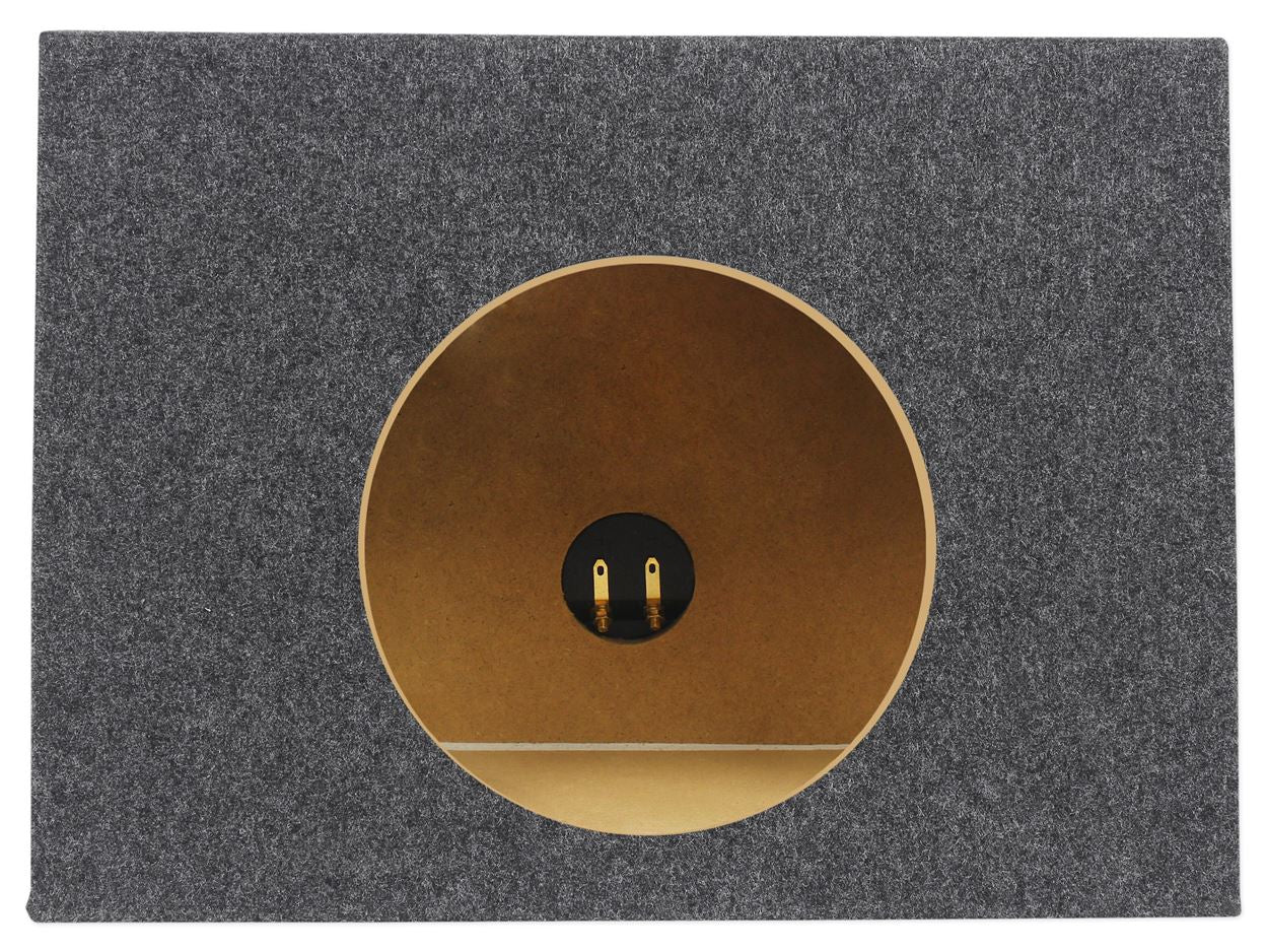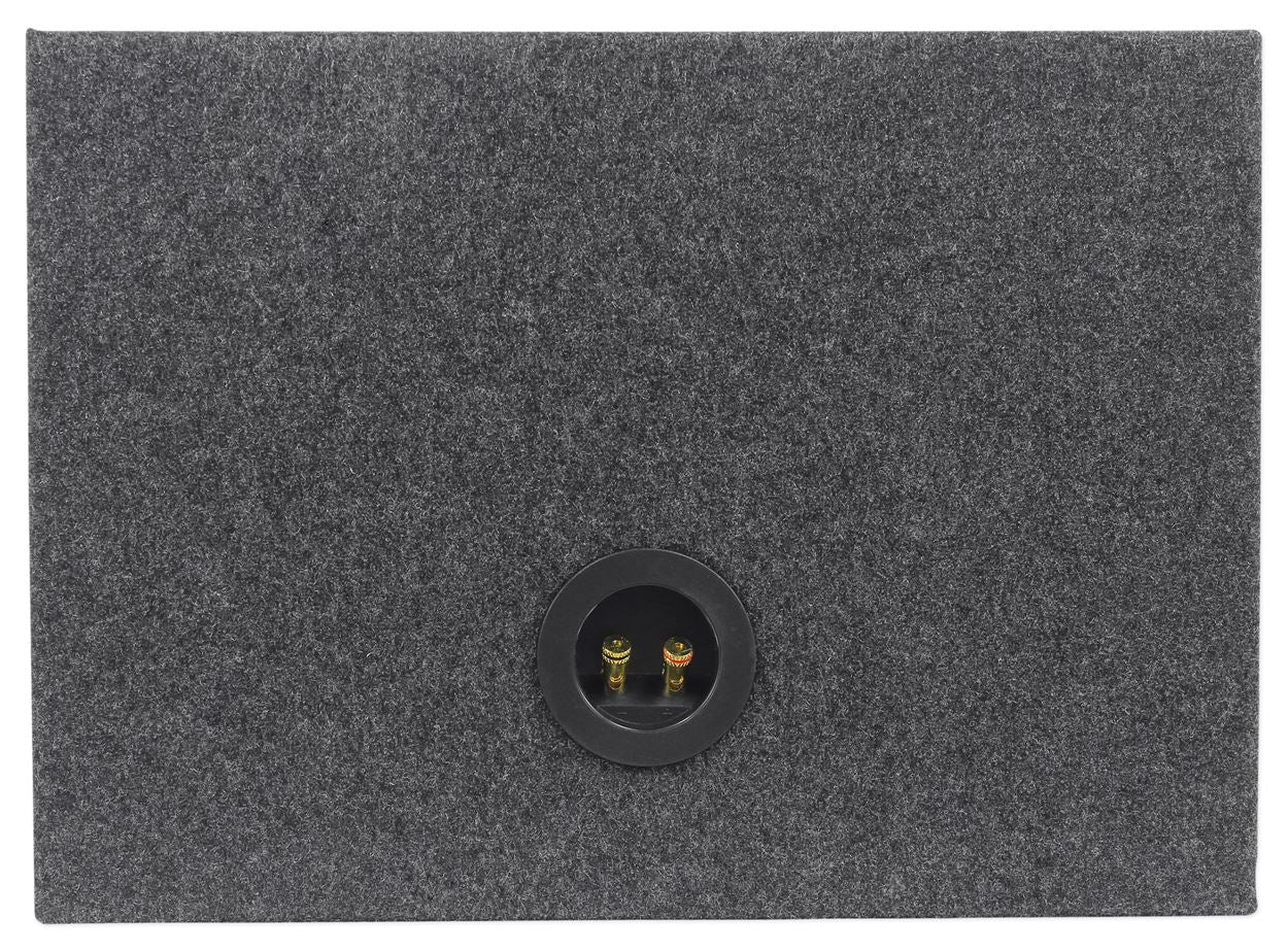 The RSST8 single sealed 8" shallow mount speaker box is made in the USA with Grade “A” ¾” MDF wood. This enclosure is made with precision cutting machinery by industry experts that have been making these enclosures in the USA for over 20 years. All Rockville enclosures come with a customized enhanced glue that is unmatched by any other manufacturer. That means that the carpet will stay in place and not rip or tear. The ¾” USA MDF is much stronger then any type of import wood.  This will keep your box performing at an optimal level by not flexing and distorting your woofers. Your woofers will thank you!  EVERY Rockville enclosure is not only glued at all joints but stapled as well. If that wasn’t enough we add a layer of silicon to every seam! This makes your Rockville enclosure rock even more!