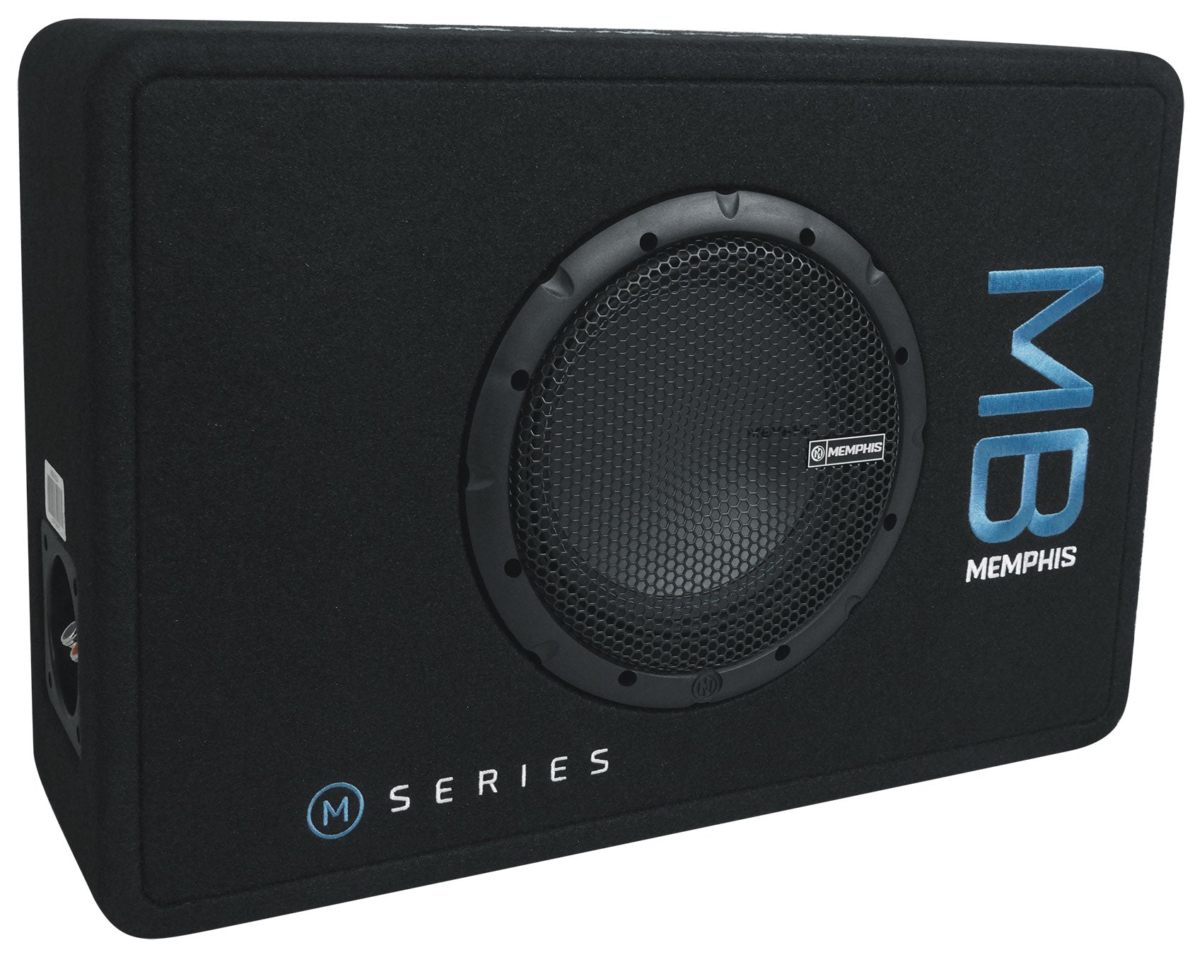 MB Subwoofers were designed with a goal of creating an extremely versatile subwoofer capable of producing intense bass response. Memphis has loaded these impressive subwoofers into an enclosure engineered specifically to maximize the performance of the subwoofers. MB loaded enclosures feature a carpet wrapped exterior emblazoned with MSeries and Memphis branding. These compact 8″ enclosures also include rubber feet for downfiring applications and feature a side loaded ported for maximum output. Enjoy high performance MSeries MB bass in a convenient and stunning looking enclosure with MB Loaded enclosures.