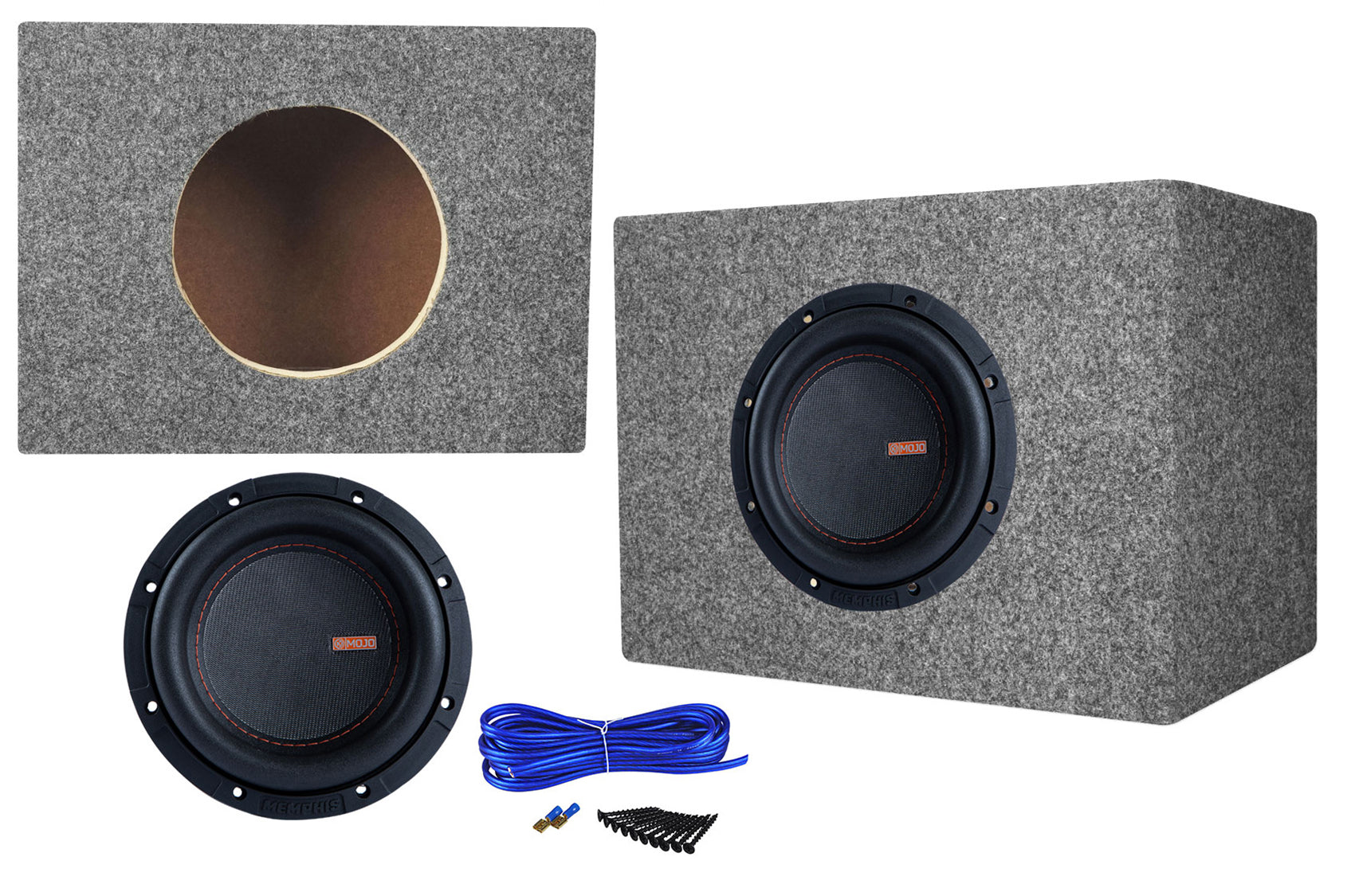 This accessory package includes everything you need to install one subwoofer into an enclosure, and wire to connect the enclosure to your amplifier. This package is a top of the line accessory package which we put together and tested.