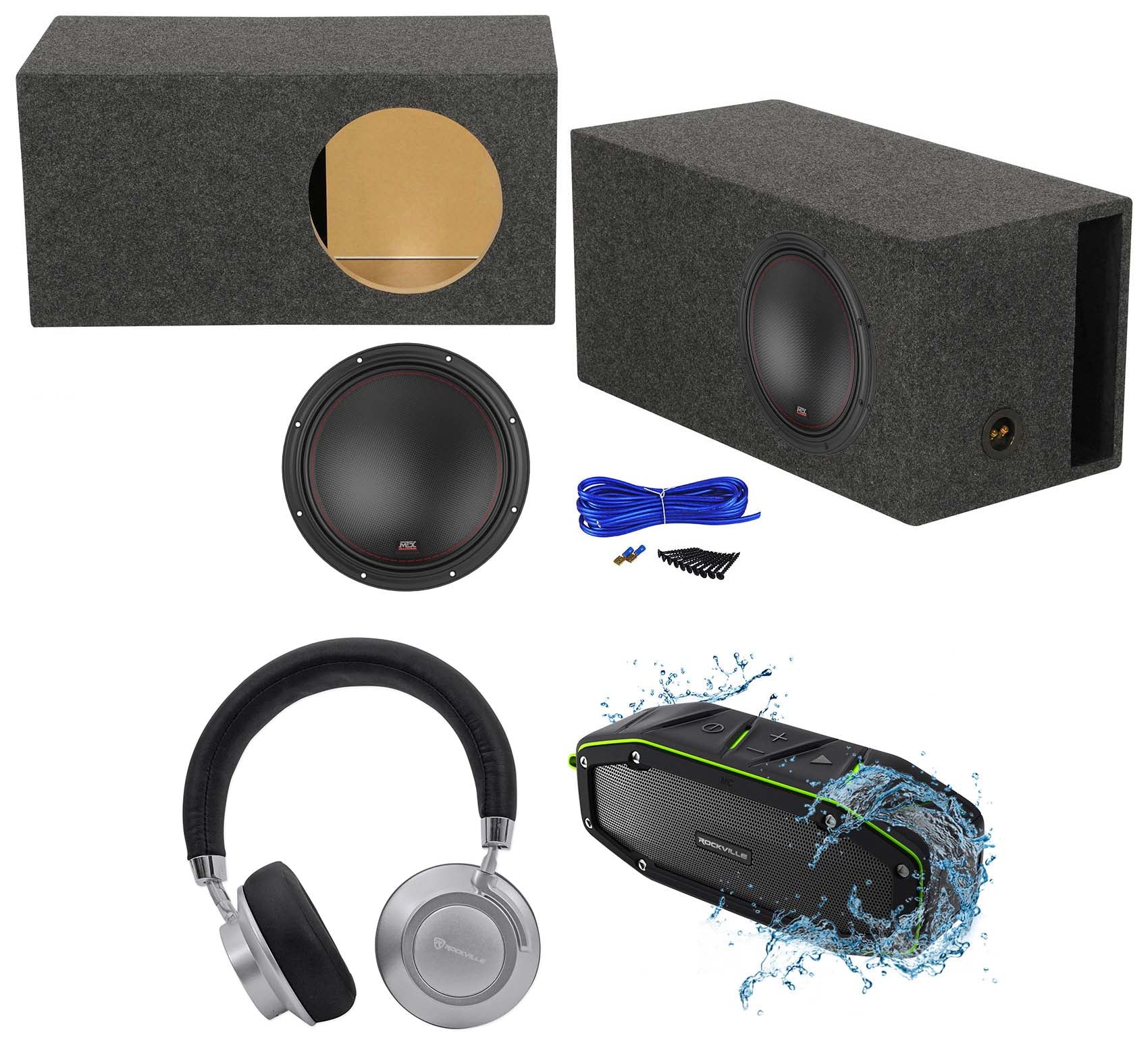 MTX 7512-22 12" 1500w Car Subwoofer 2-ohm+Vented Sub Box Enclosure+Headphones