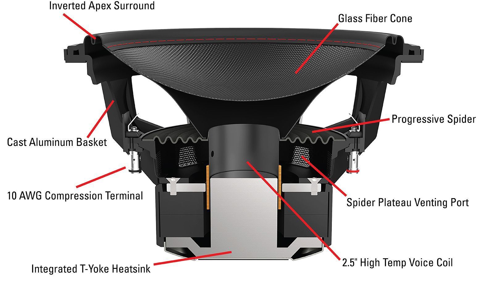 - Progressive Suspension: Controls Excursion at High Power Reducing Distortion Resulting in Better Sound Quality