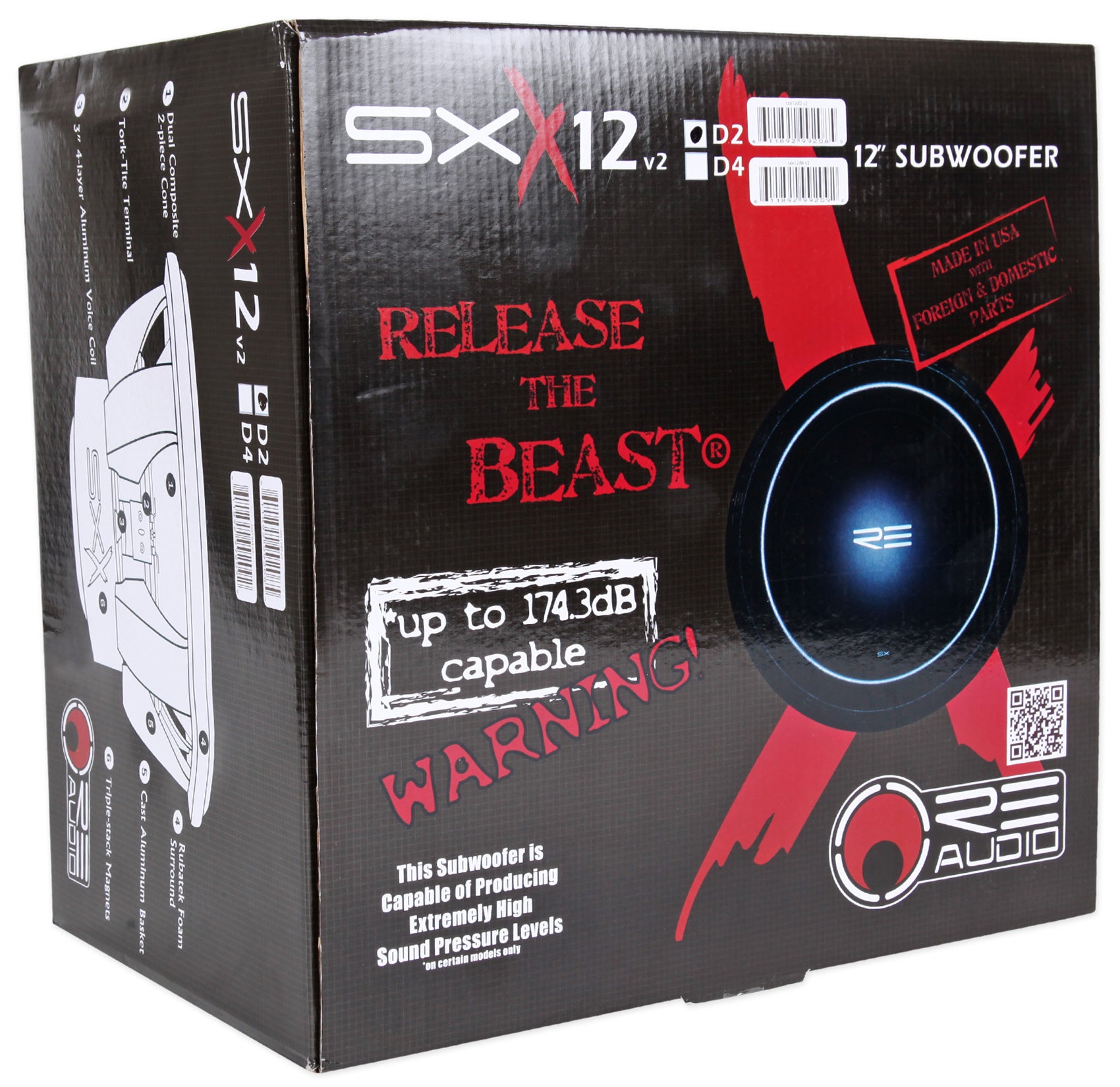 Description for RE Audio Sub:The SXX v2 SERIES has been improved over the SXX line. Power handling is now at 1200W. The efficiency has increased. So has its excursion capability. The SXX v2 SERIES also touts a newly designed motor, which along with the design of the cast basket and rubber-booted triple stack magnet assembly make for a great look.