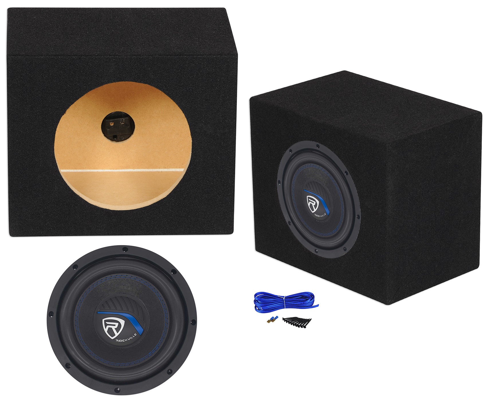 - (1) Rockville RSE8 Single 8" 0.55 cu. ft. MDF Sealed Car Sub Box Subwoofer Enclosure