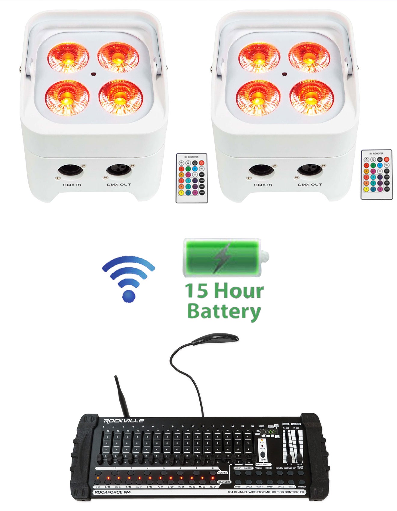 2) Rockville BEST PAR 50 Battery Wash Lights Wireless DMX+384 Channel Controller