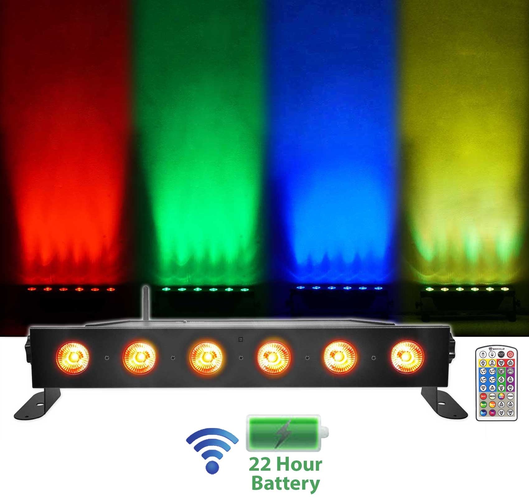 - Each LED is a 6-in-1 RGBWA+UV (RED, GREEN, BLUE, WHITE, AMBER + ULTRA VIOLET)