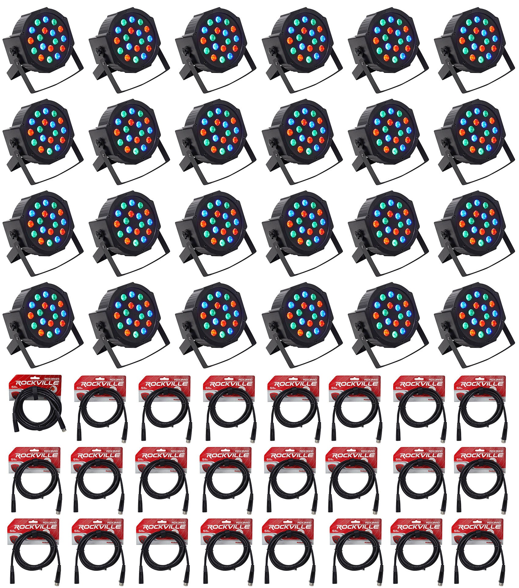 (24) Rockville RockPAR50 LED RGB Compact Par Can DJ/Club DMX Wash Lights+Cables