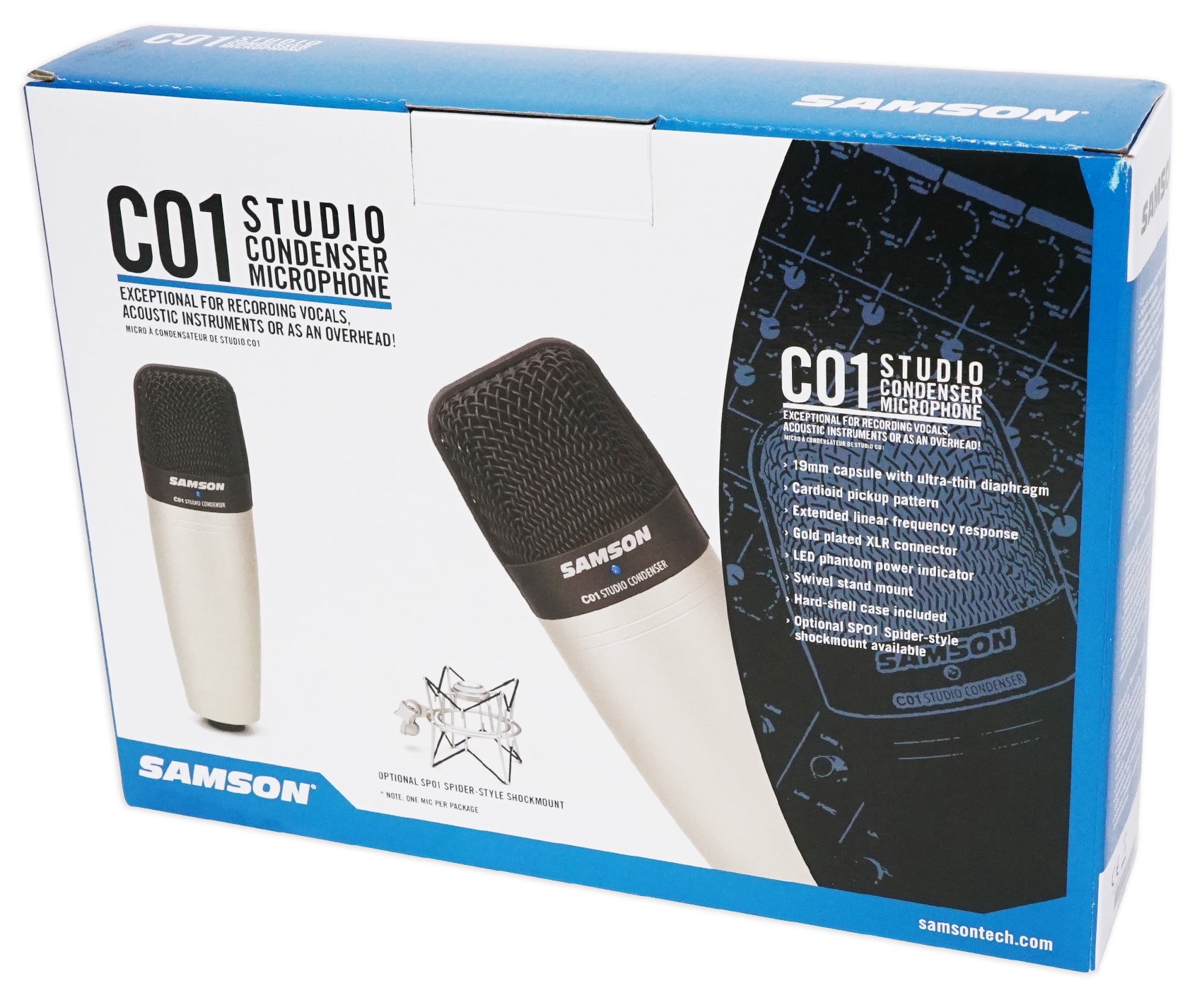 Samson's C01 has all the performance features that you demand from a large diaphragm condenser microphone. It's the perfect solution for recording vocals, acoustic instruments and for use as and overhead drum mic.