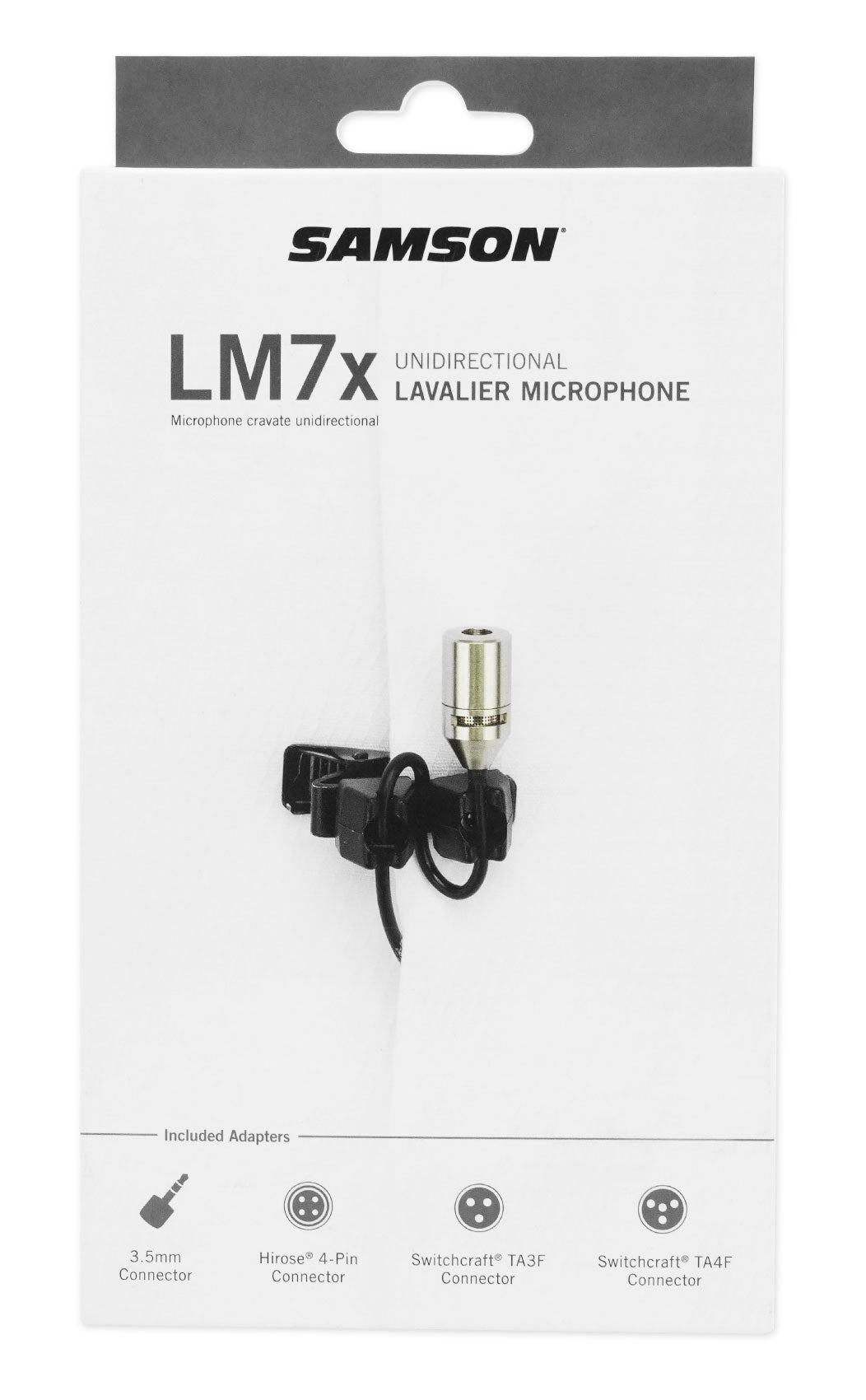 The Samson LM7x is a low-profile, unidirectional lavalier microphone with a