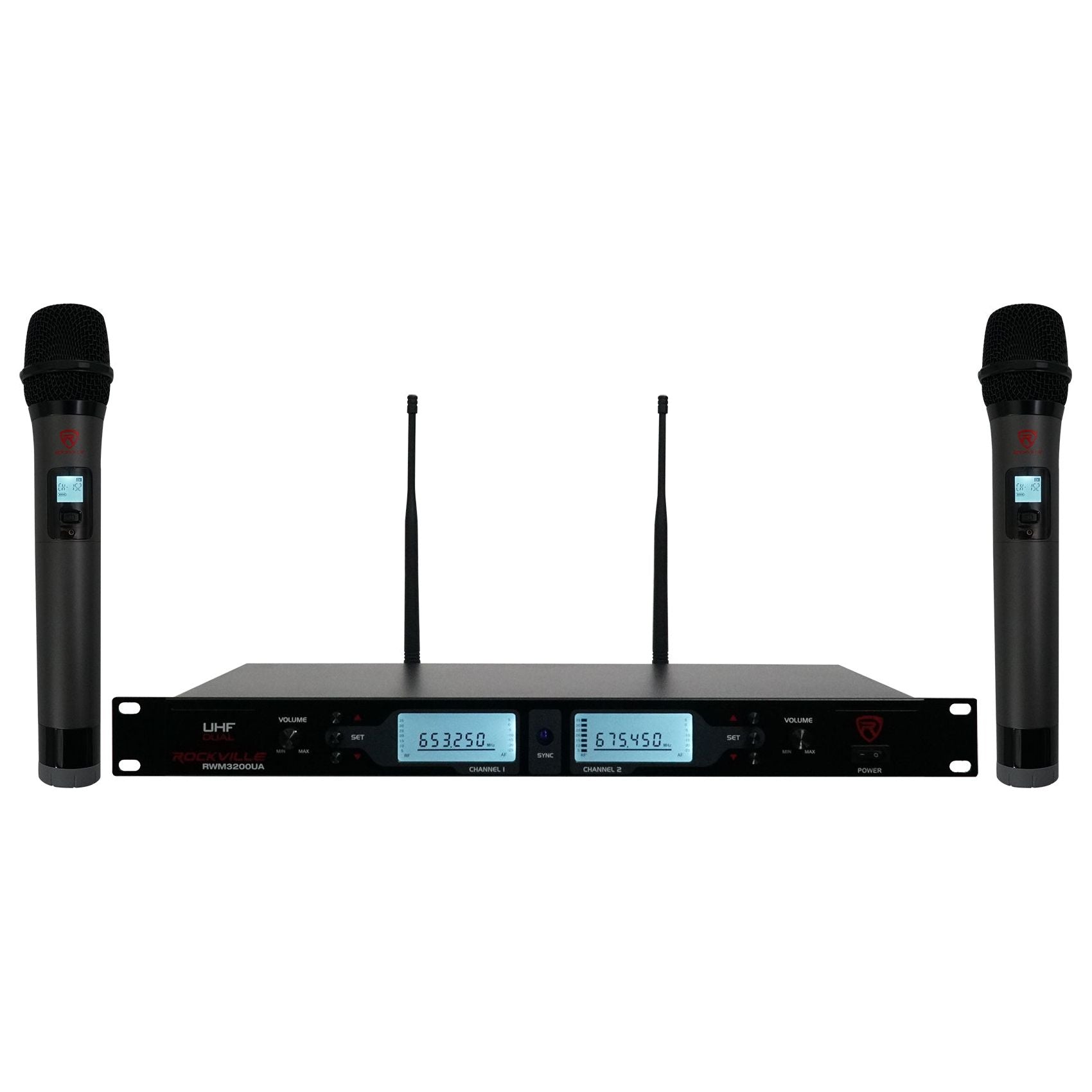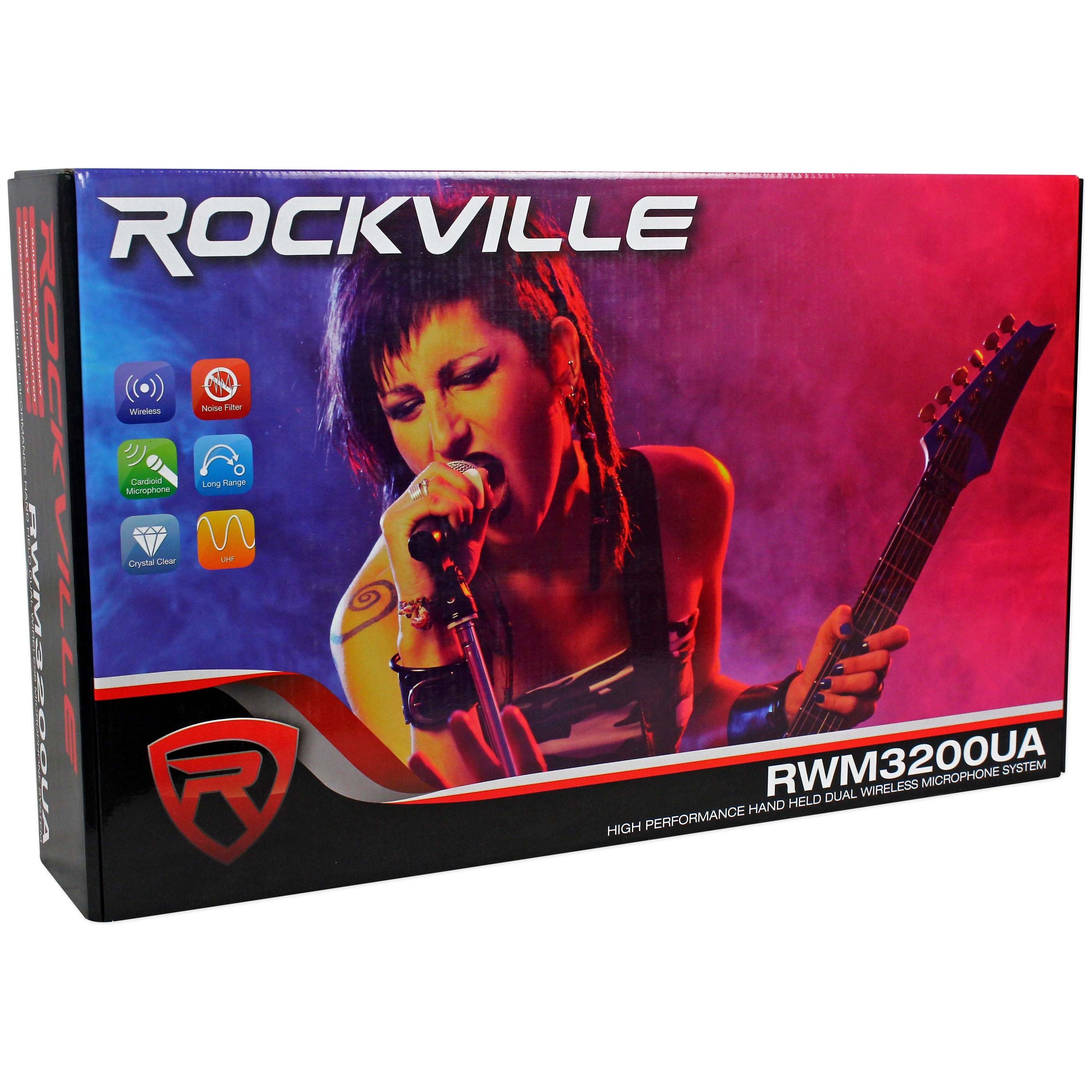 • Rockville RWM3200UA UHF Wireless Dual HandHeld Microphone System Adjustable Freq