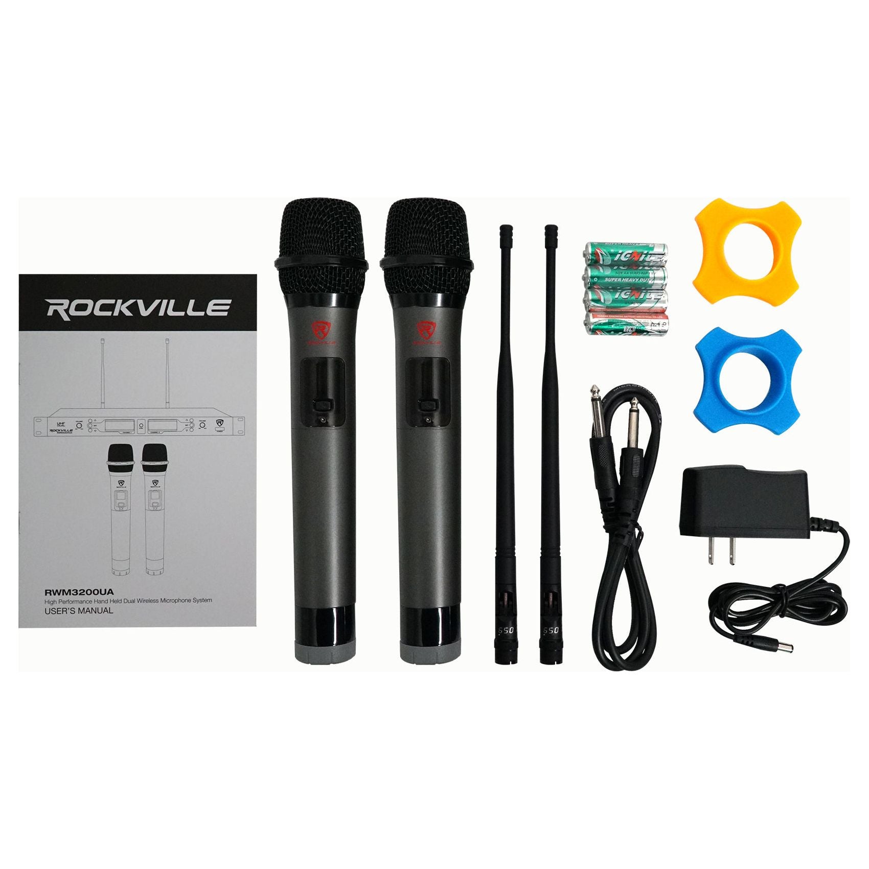 • Includes RWM3200UA transmitter with (2) hand held, high sensitivity, unidirectional, wireless cardioid microphones