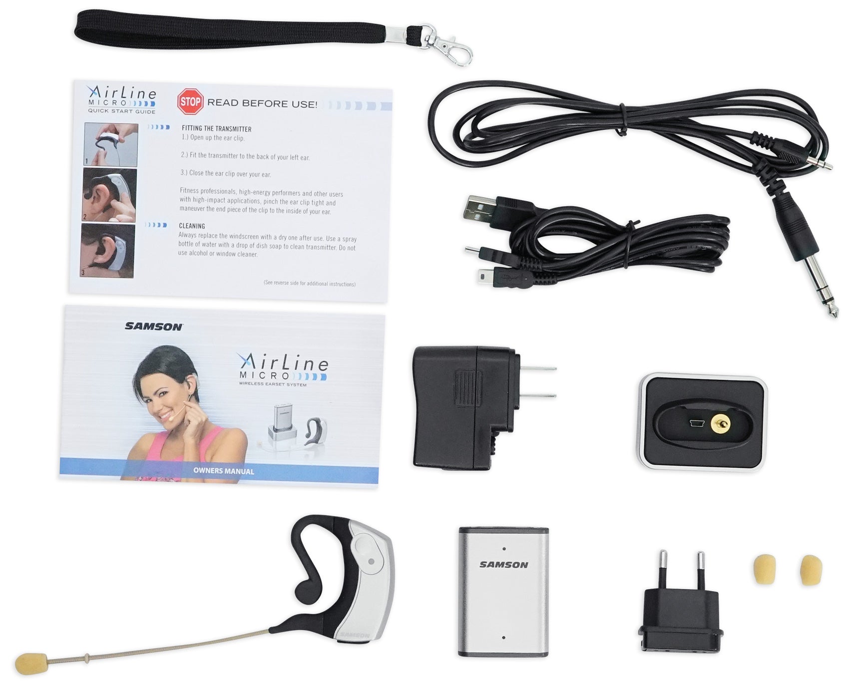 - Samson AirLine Micro UHF Wireless Earset Microphone Mic with Transmitter+ Receiver